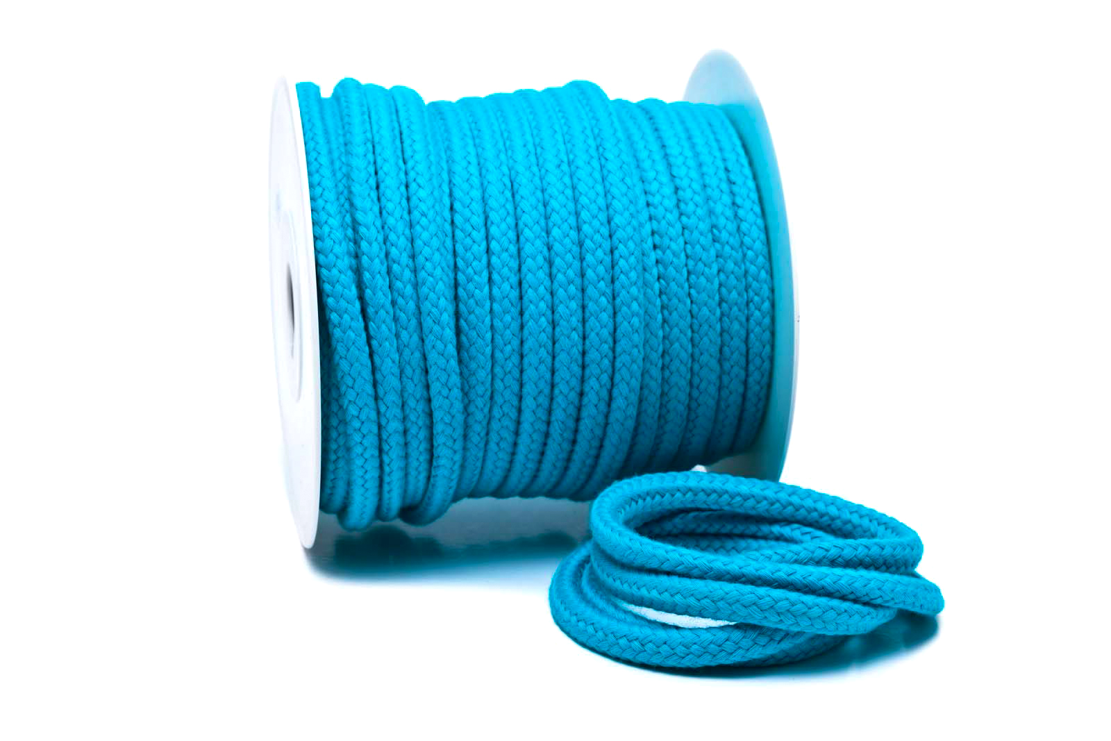 Hochwertige Baumwollkordel dunkeltürkis für Hoodies, Turnbeutel o.ä. Das achtfach geflochtene Band aus 100 % Baumwolle ist ca. 9 mm dick und gibt bei Zug leicht nach. Die Kordel ist geschmeidig und stabil.- Zusammensetzung: 100 % Baumwolle