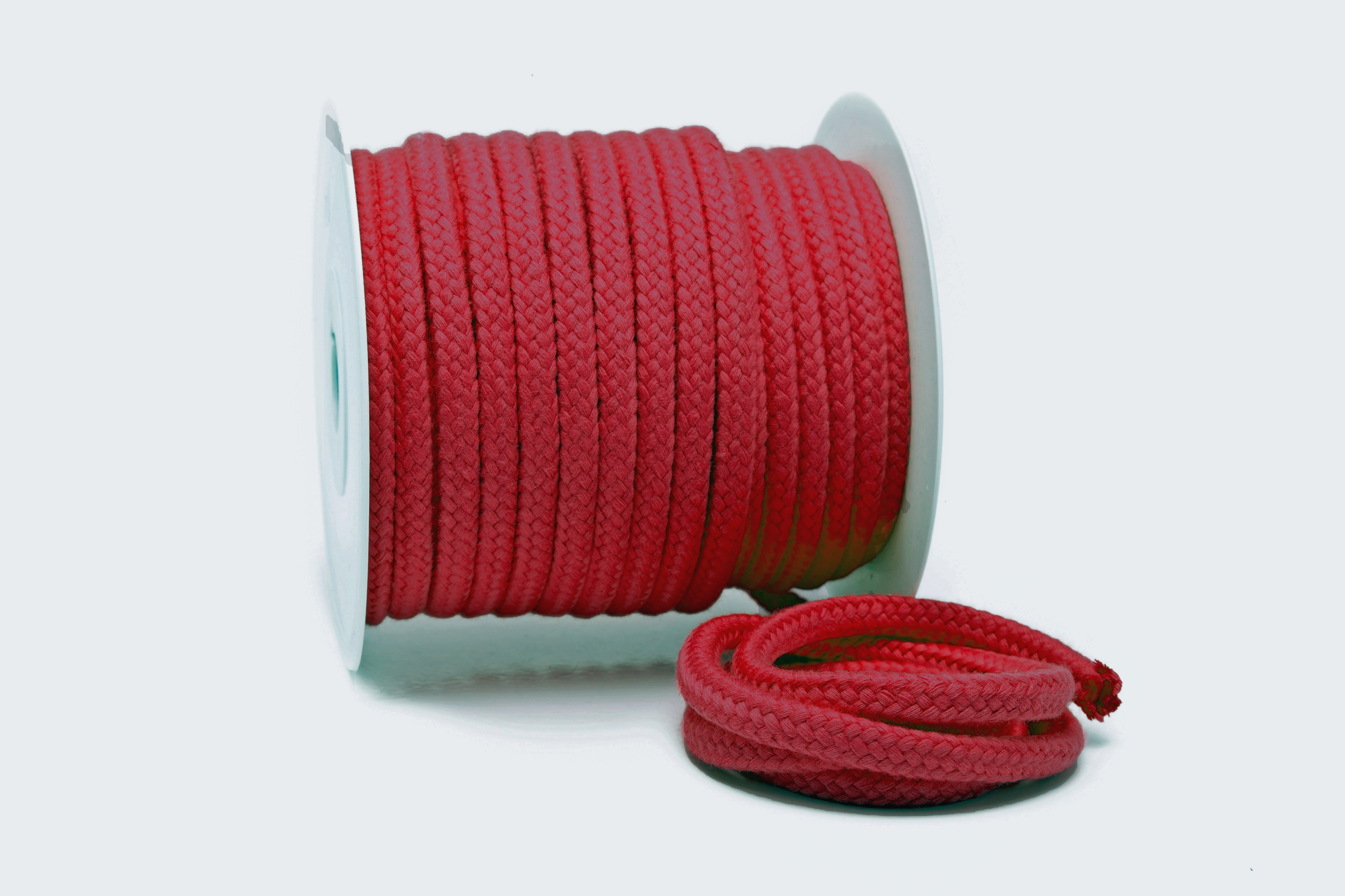 Hochwertige Baumwollkordel dunkleres rot für Hoodies, Turnbeutel o.ä. Das achtfach geflochtene Band aus 100 % Baumwolle ist ca. 9 mm dick und gibt bei Zug leicht nach. Die Kordel ist geschmeidig und stabil.- Zusammensetzung: 100 % Baumwolle