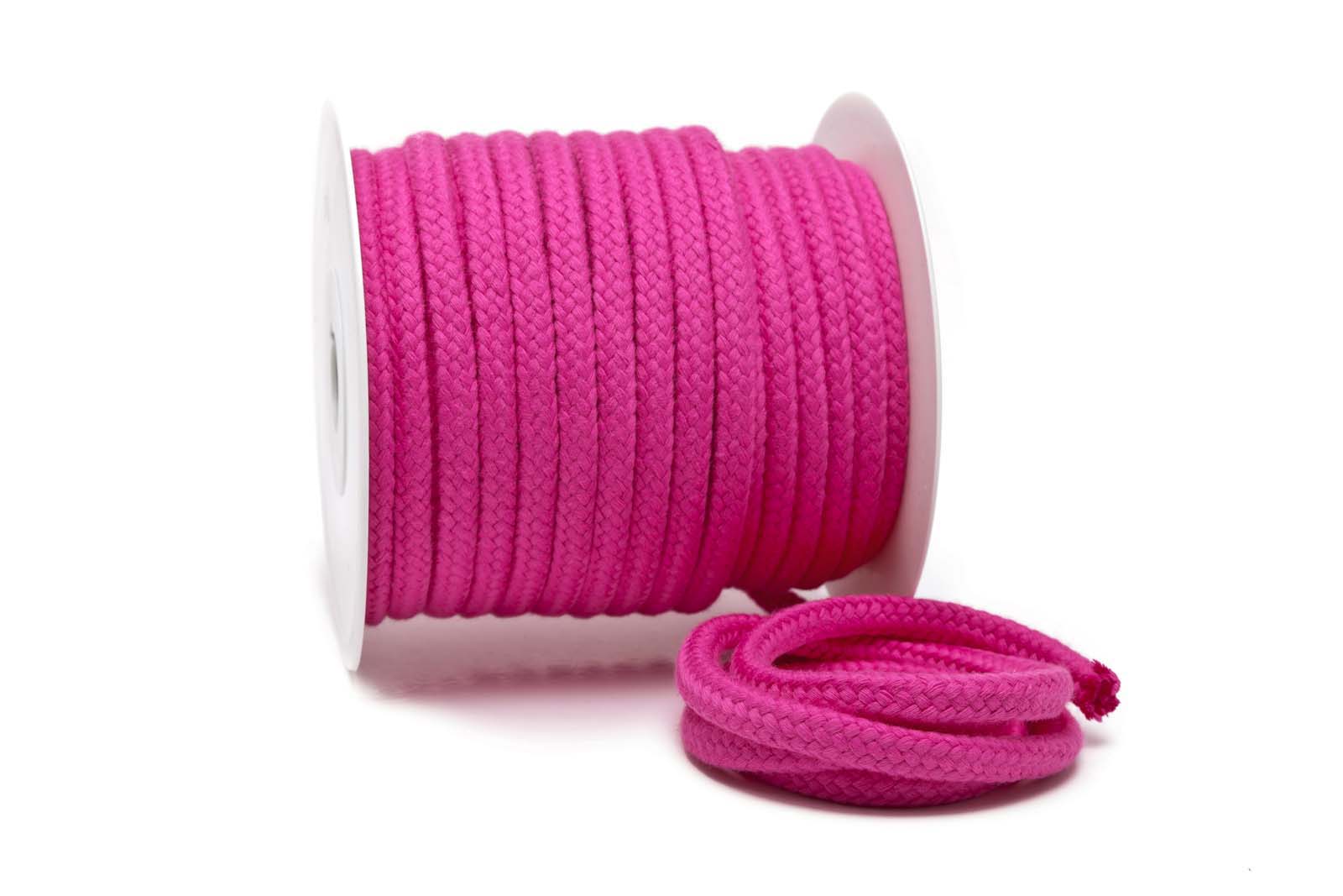 Hochwertige Baumwollkordel fuchsia für Hoodies, Turnbeutel o.ä. Das achtfach geflochtene Band aus 100 % Baumwolle ist ca. 9 mm dick und gibt bei Zug leicht nach. Die Kordel ist geschmeidig und stabil.- Zusammensetzung: 100 % Baumwolle