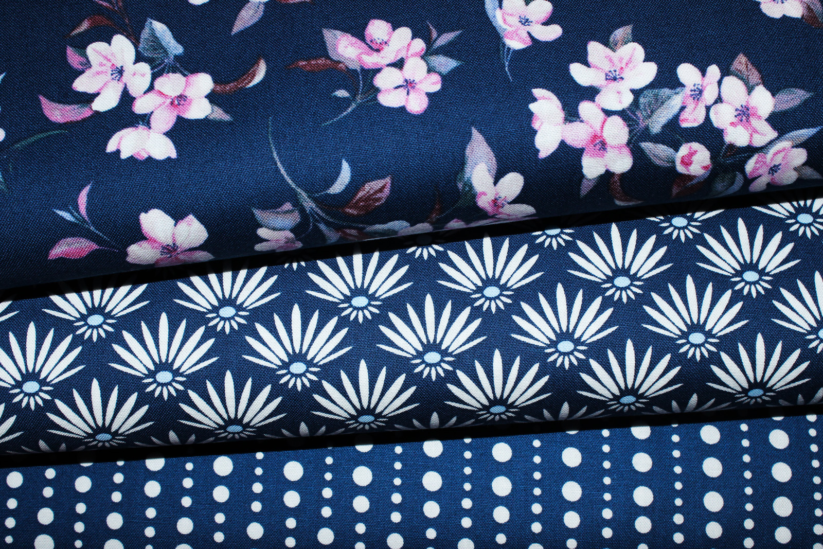 Baumwollstoff Blooms-Dots marine