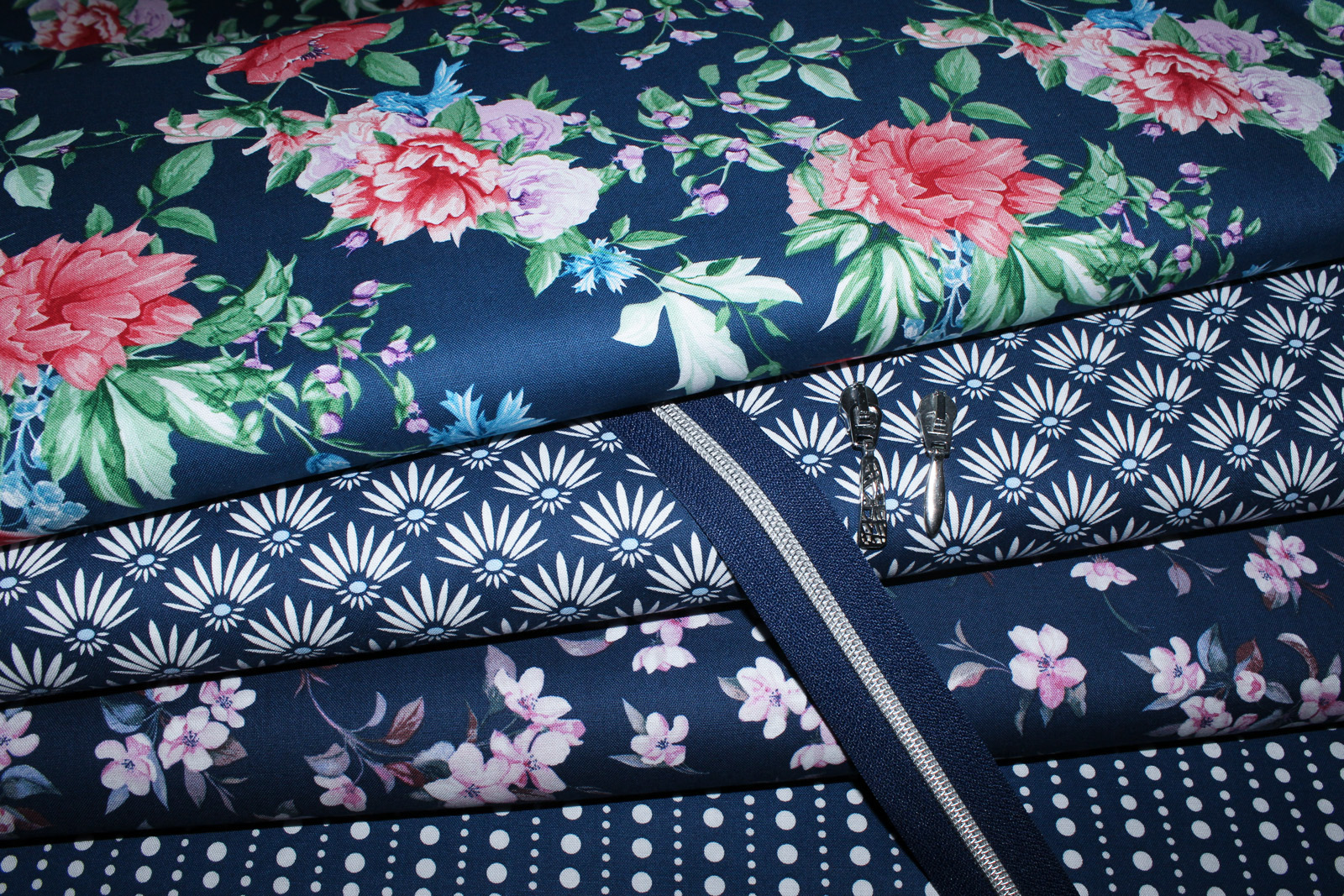 Wunderschöner Baumwollwebstoff "Blooms-Dots" in marine aus der Gütermann - ring a roses - Kollektion. Prima geeignet für Bekleidung, Taschen, Accessoires und Patchwork. Lässt sich prima mit den anderen Stoffen aus Gütermann - "Blooms" marine - Kollektion kombinieren. Die weiteren Stoffe auf dem dritten Foto gehören nicht zum Angebot, sondern dienen der Inspiration.