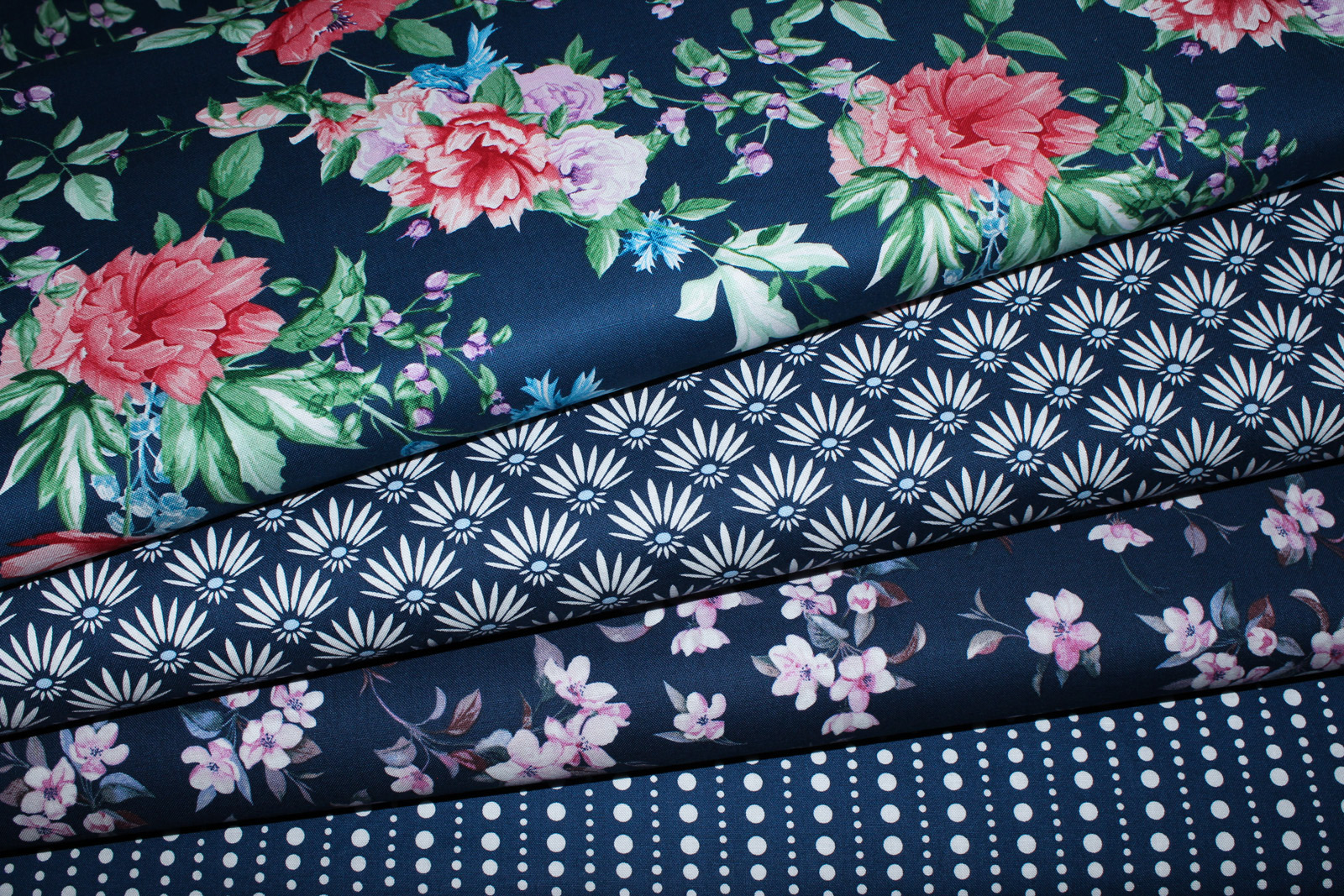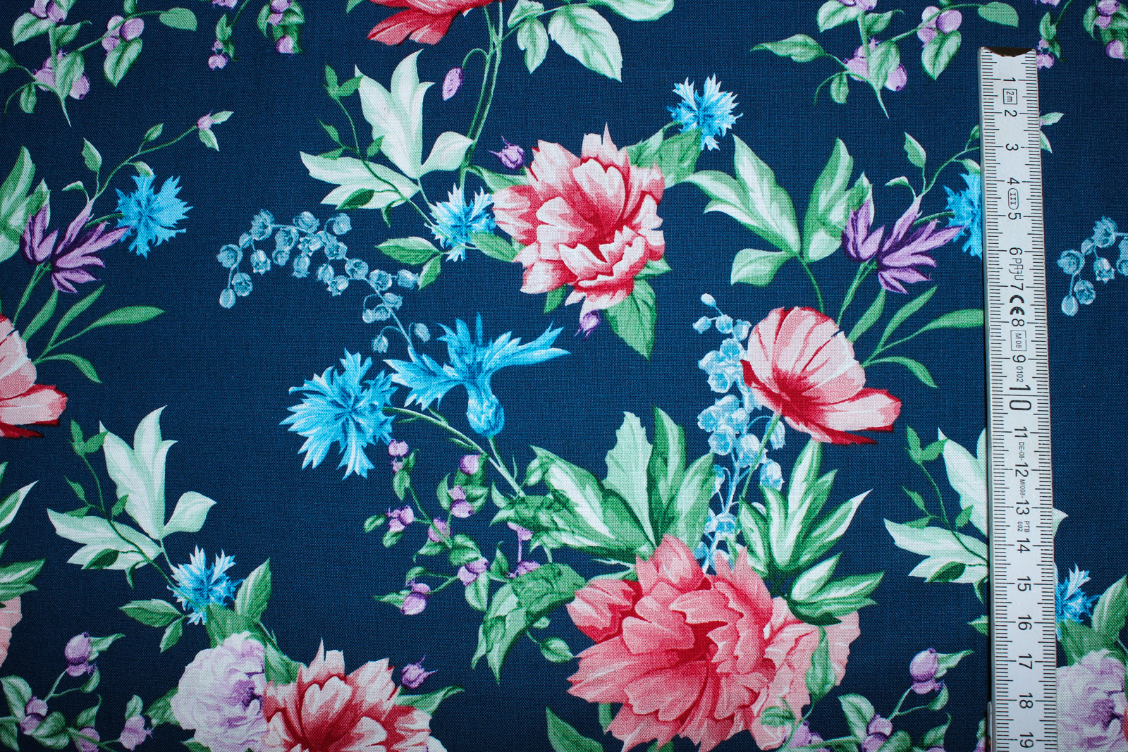 Wunderschöner Baumwollwebstoff "Blooms-Wildflowers" in marine aus der Gütermann - ring a roses - Kollektion. Prima geeignet für Bekleidung, Accessoires und Patchwork. Lässt sich prima mit den anderen Stoffen aus Gütermann - "Blooms" marine - Kollektion kombinieren. Die weiteren Stoffe und Nähzubehör auf dem vierten und fünften Foto gehören nicht zum Angebot, sondern dienen der Inspiration.