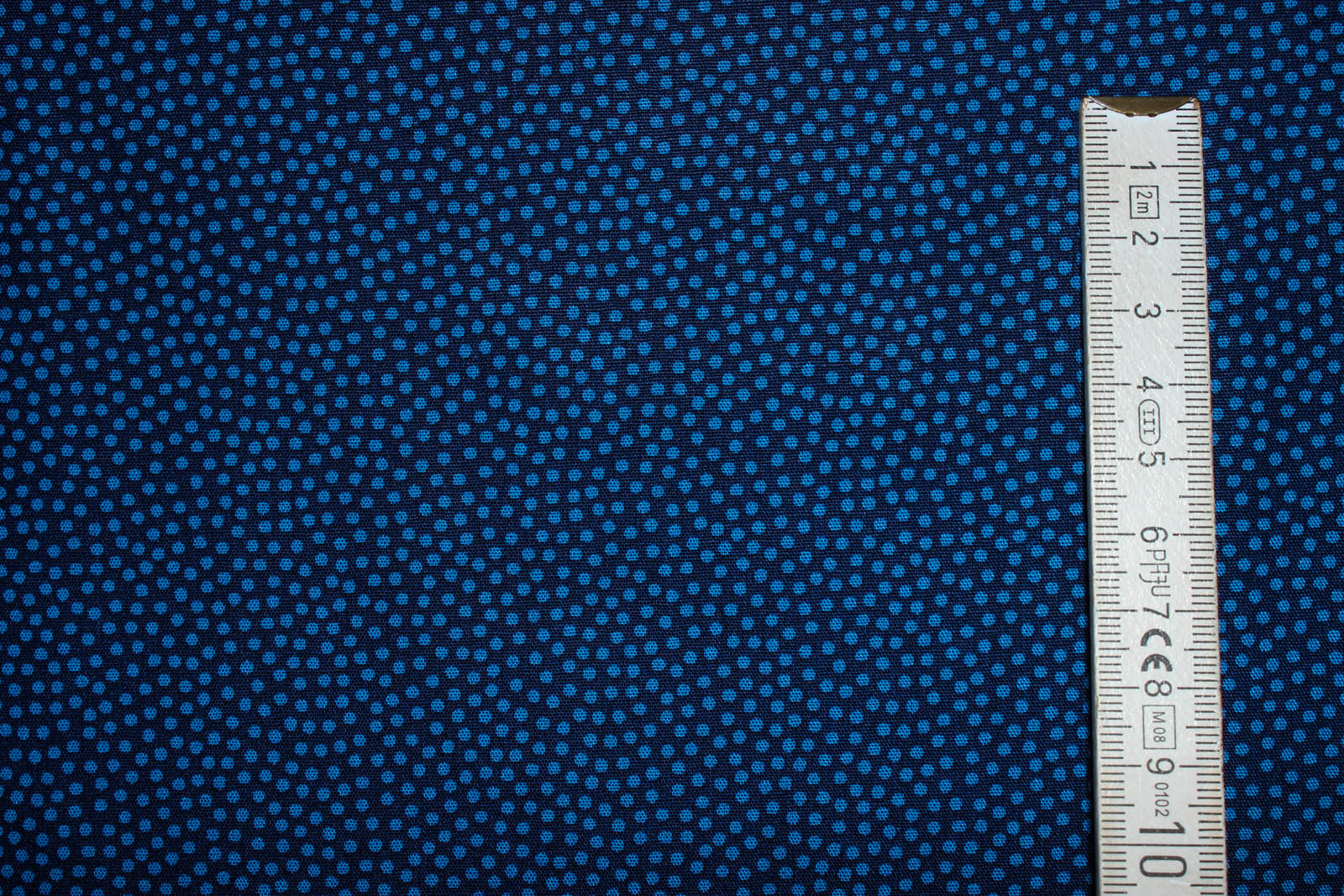 Baumwollwebstoff in dunkelblau mit kleinen unregelmäßigen Pünktchen in blau für Bekleidung, Taschen, Accessoires uvm. Die Pünktchen sind ca. 2-3 mm groß. Weitere Stoffe auf dem vierten Foto gehören nicht zu diesem Angebot, sondern dienen der Inspiration.