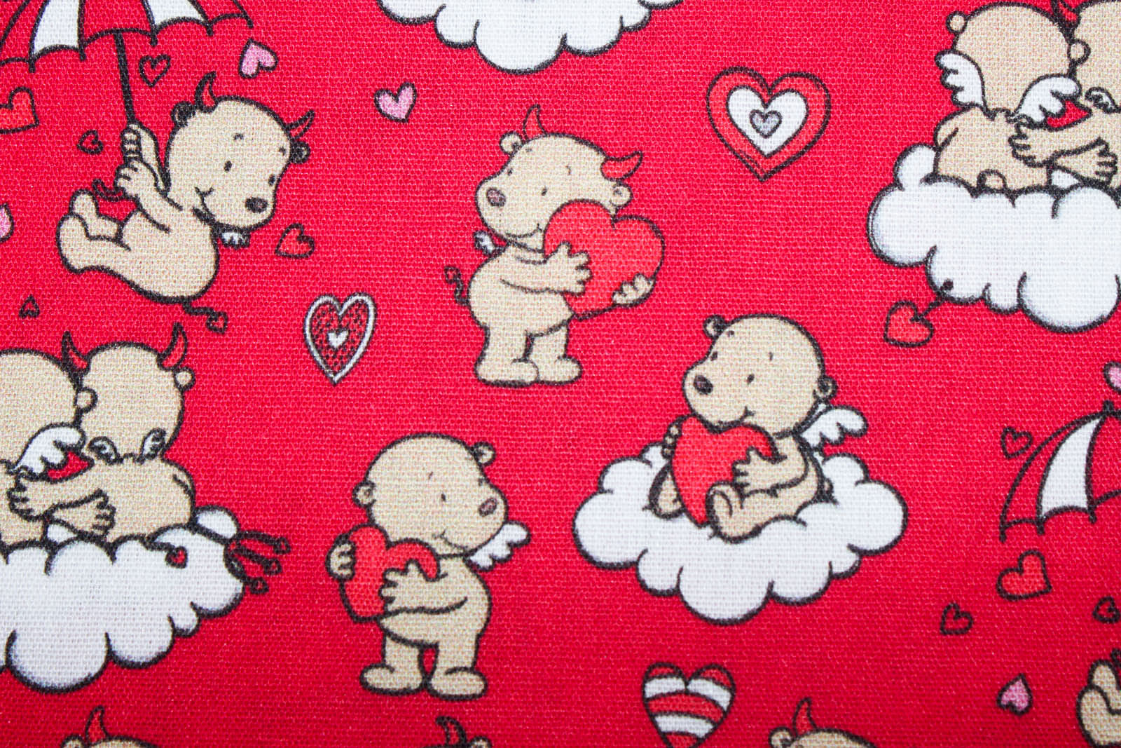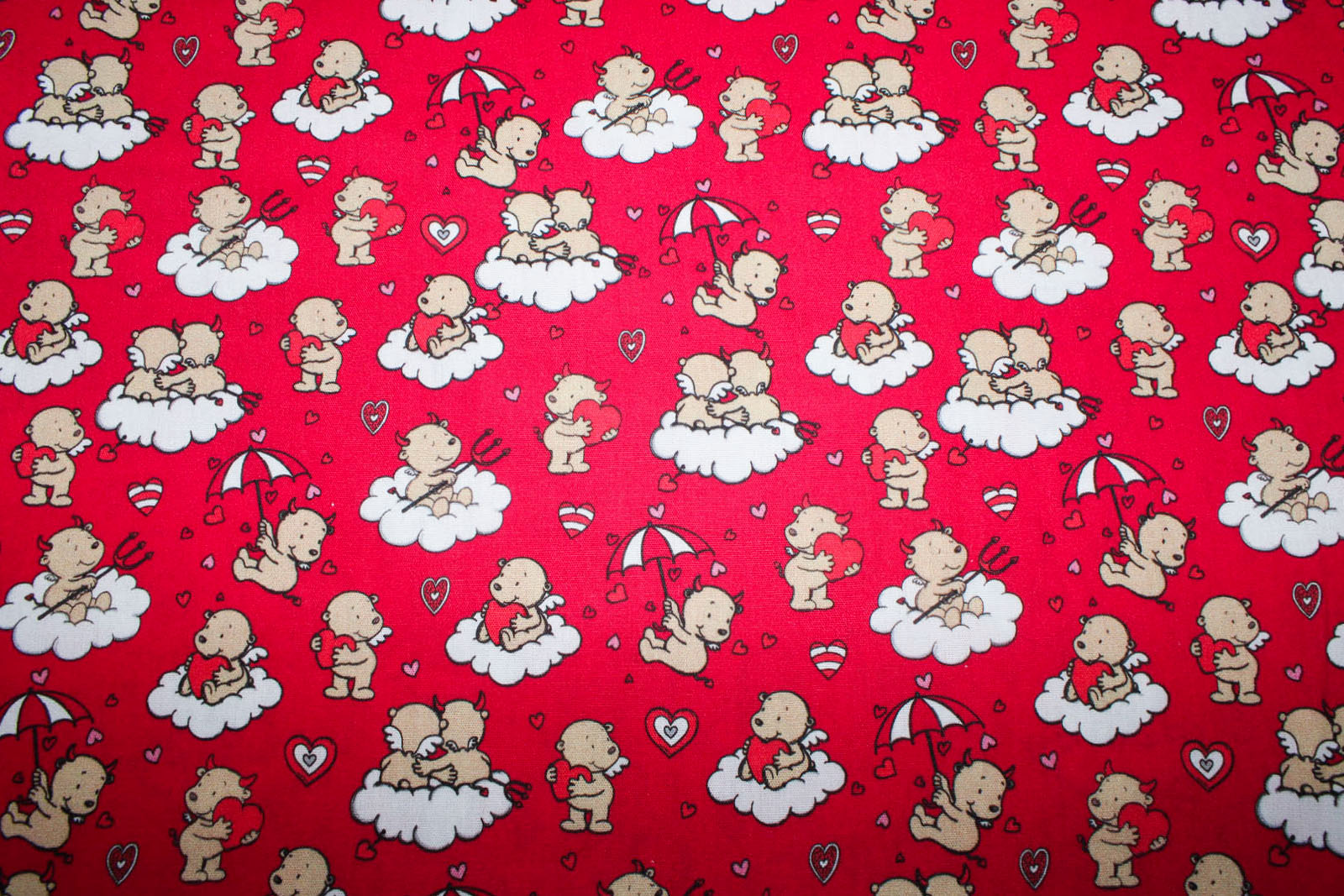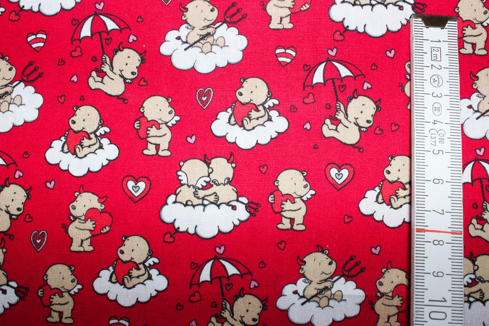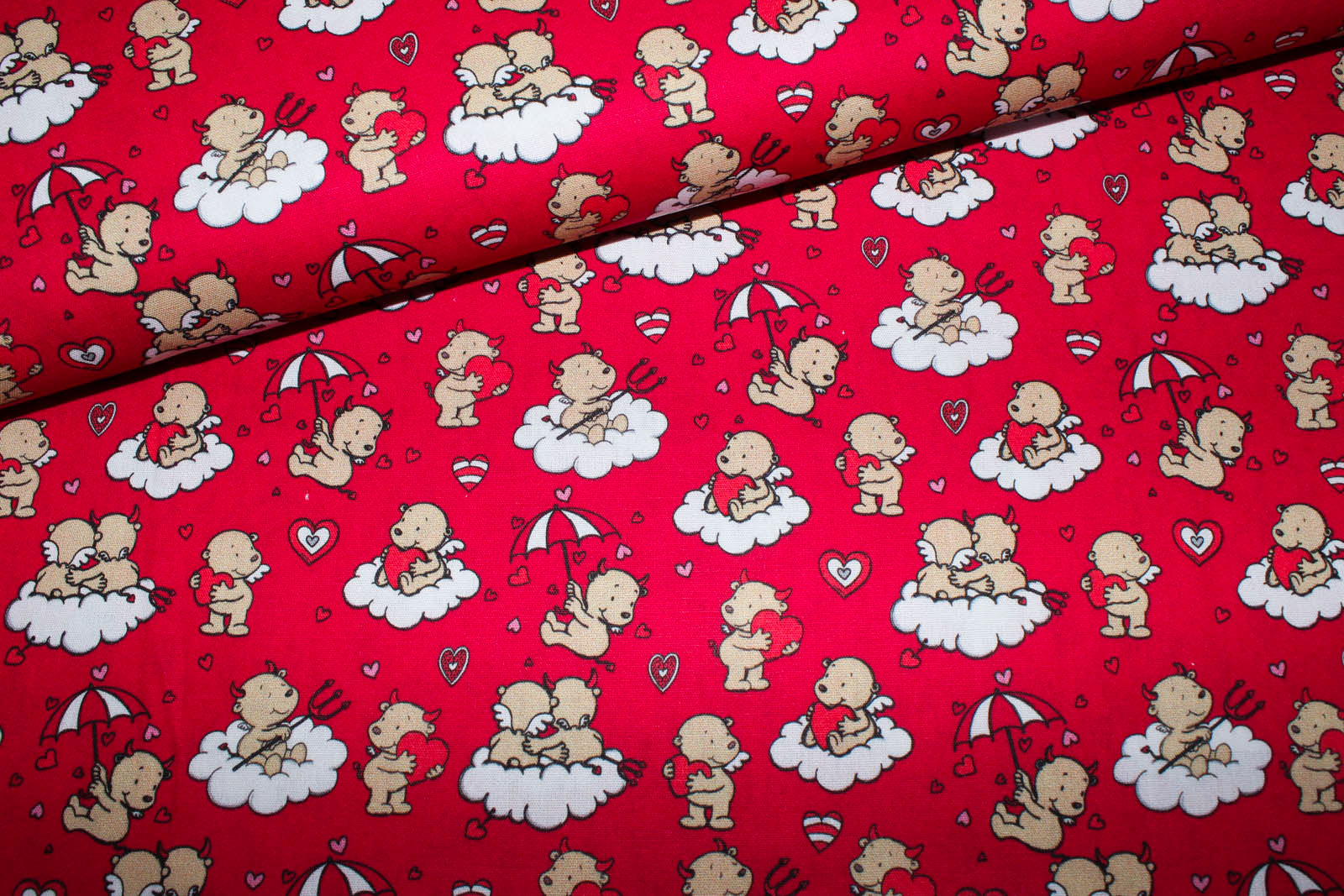 Baumwollstoff Engel & Teufel himbeerrot