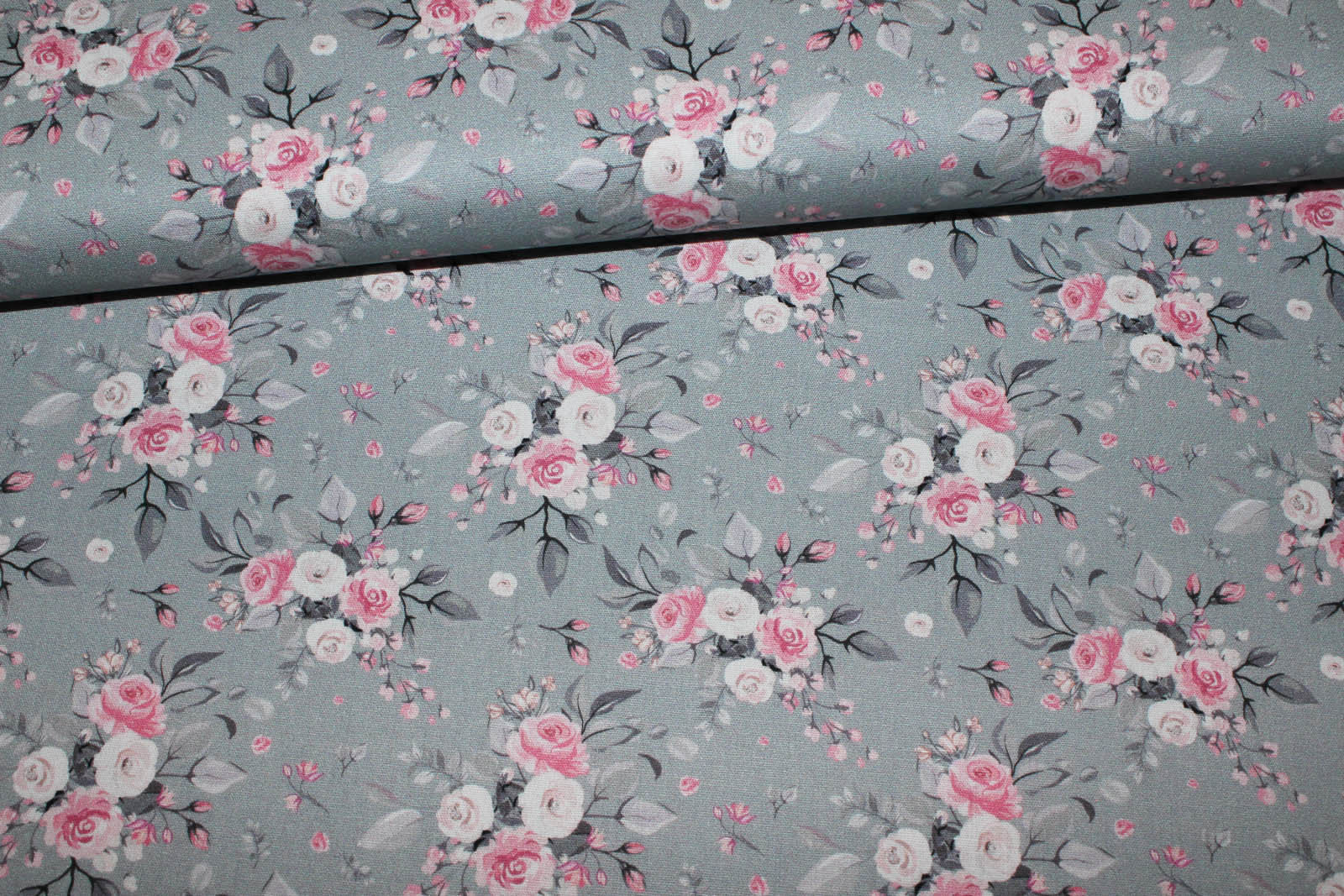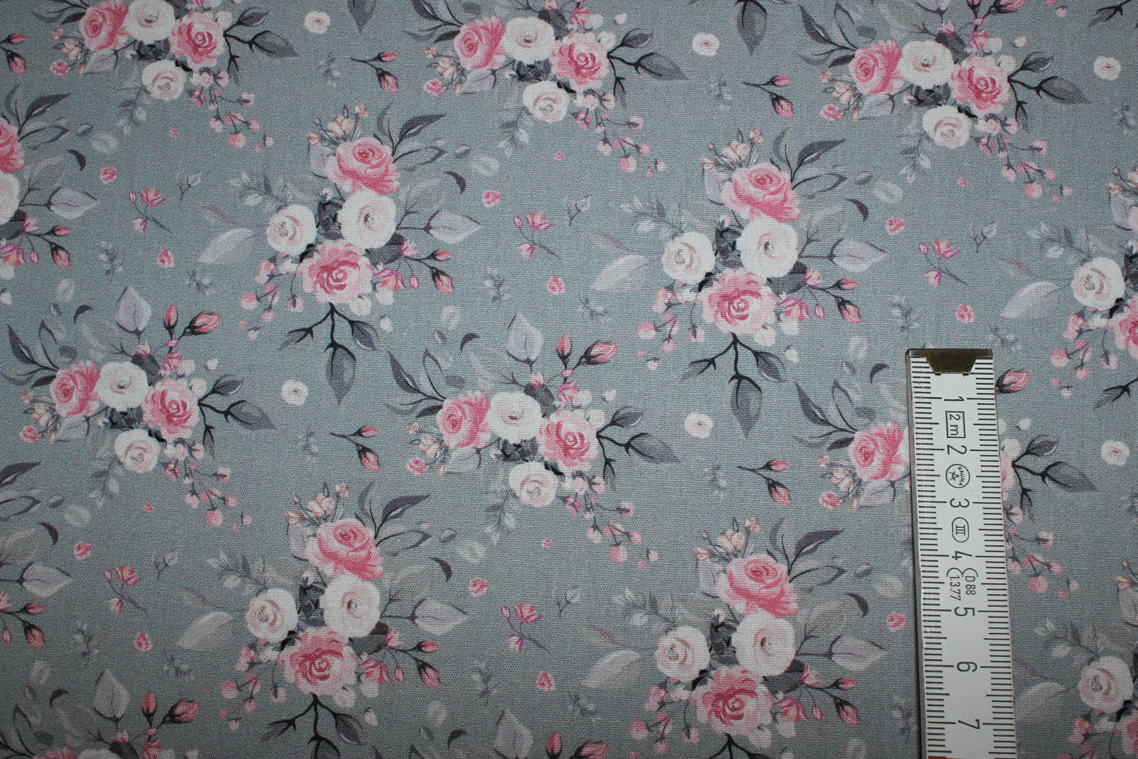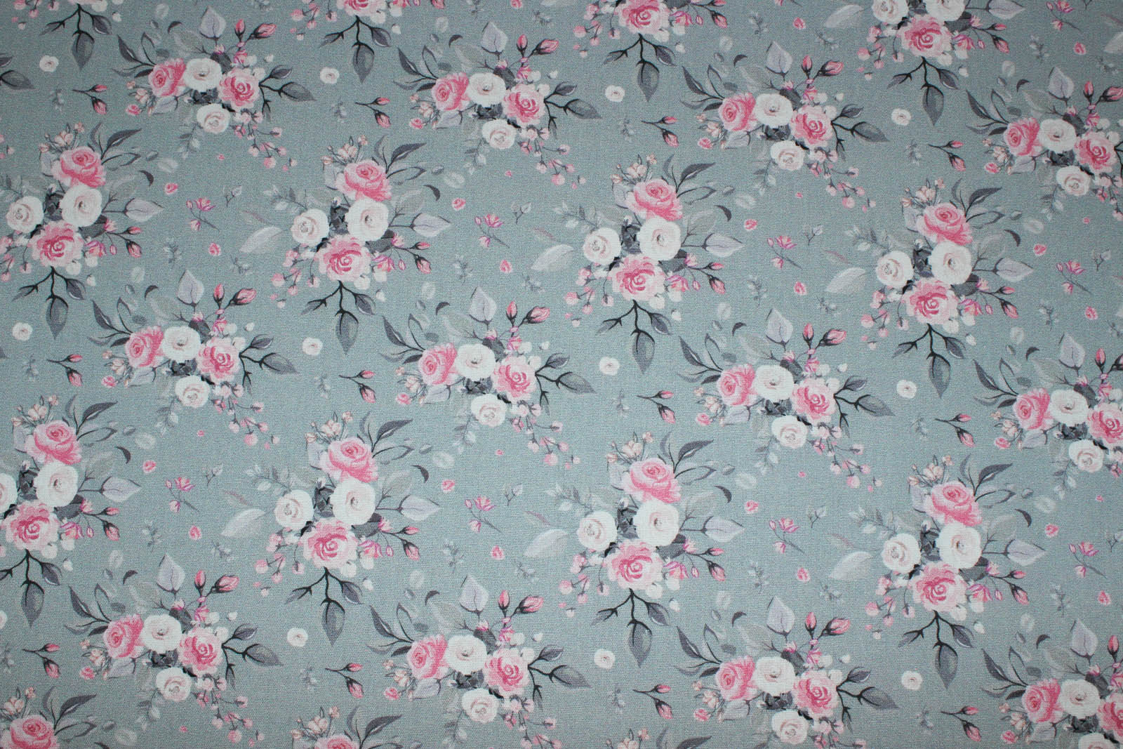 Schöner Baumwollwebstoff mit zarten Rosen. Prima geeignet z.B. für Taschen, Täschchen, Kissen sowie romantische Mädchenkleider oder Röcke.