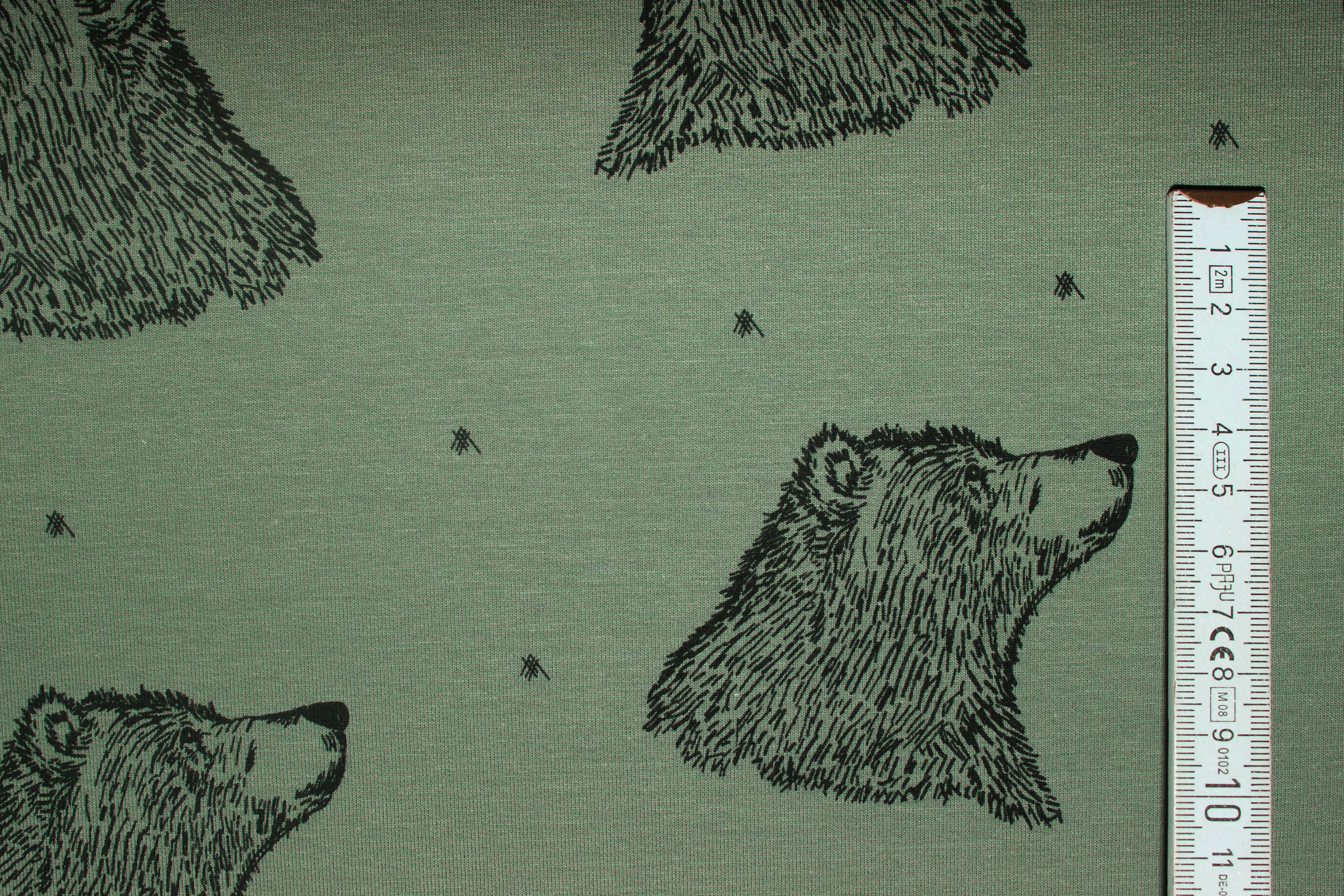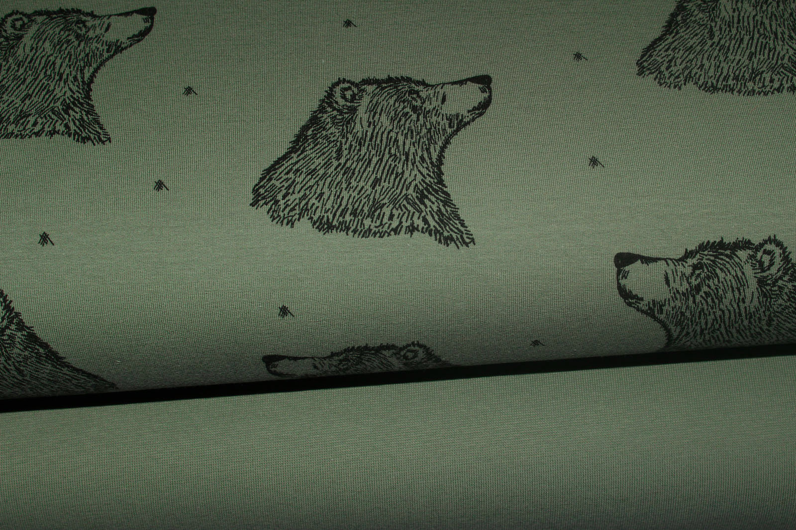 Hier biete ich Euch einen absolut traumhaften Stretchsweat der Firma Bloome Copenhagen in der Farbe olive an. Die Bärenköpfe sind schwarz. Die Rückseite des Sweats ist ähnlich wie bei Sommersweat.