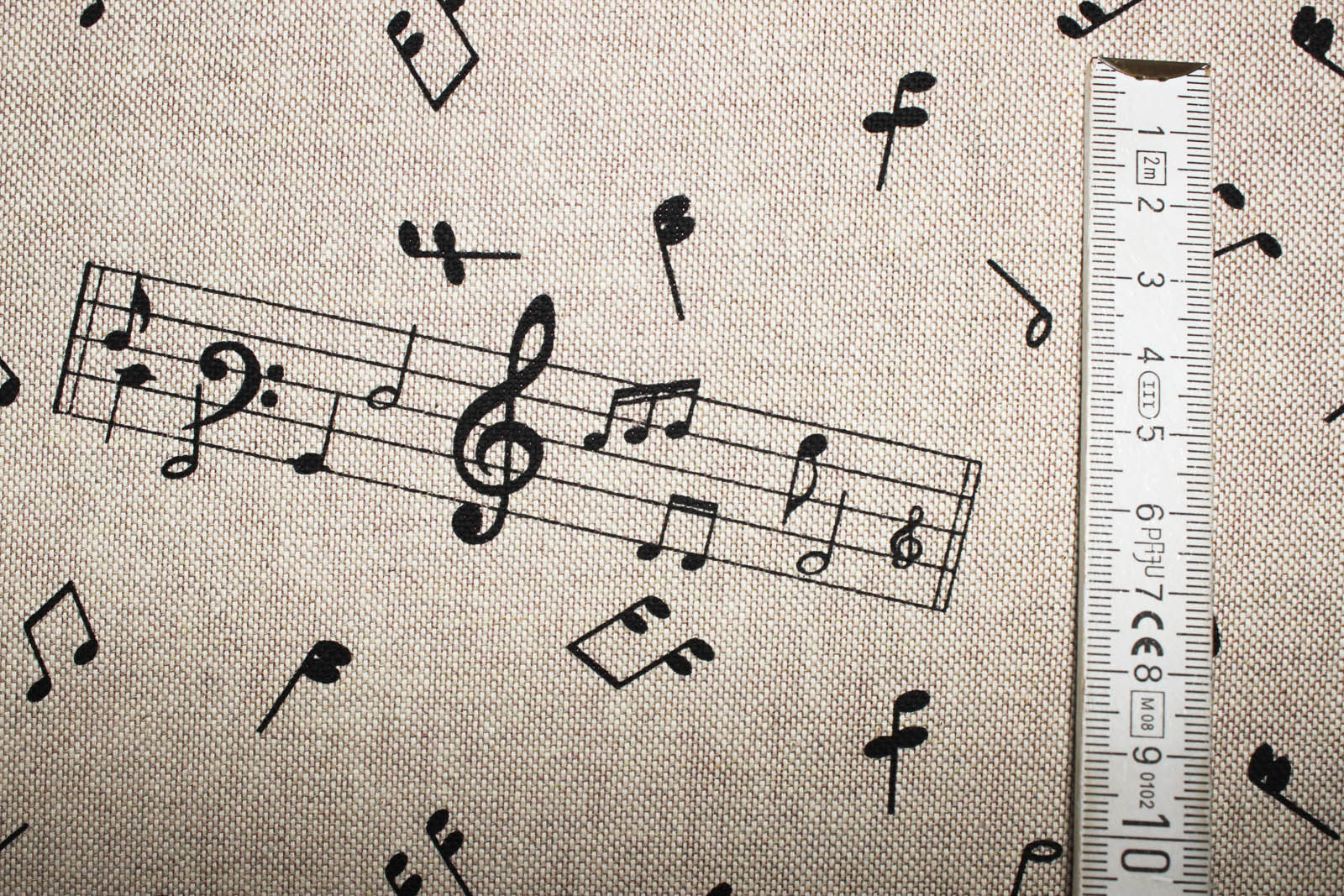 Dekostoff Noten Leinen Look