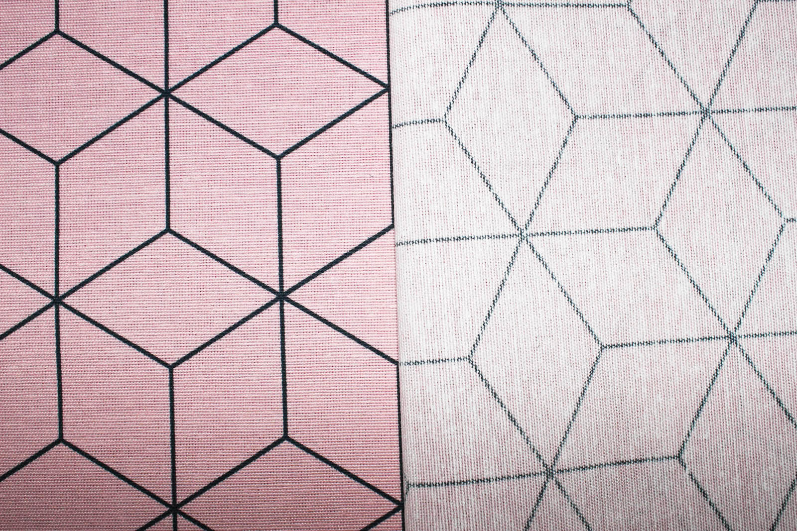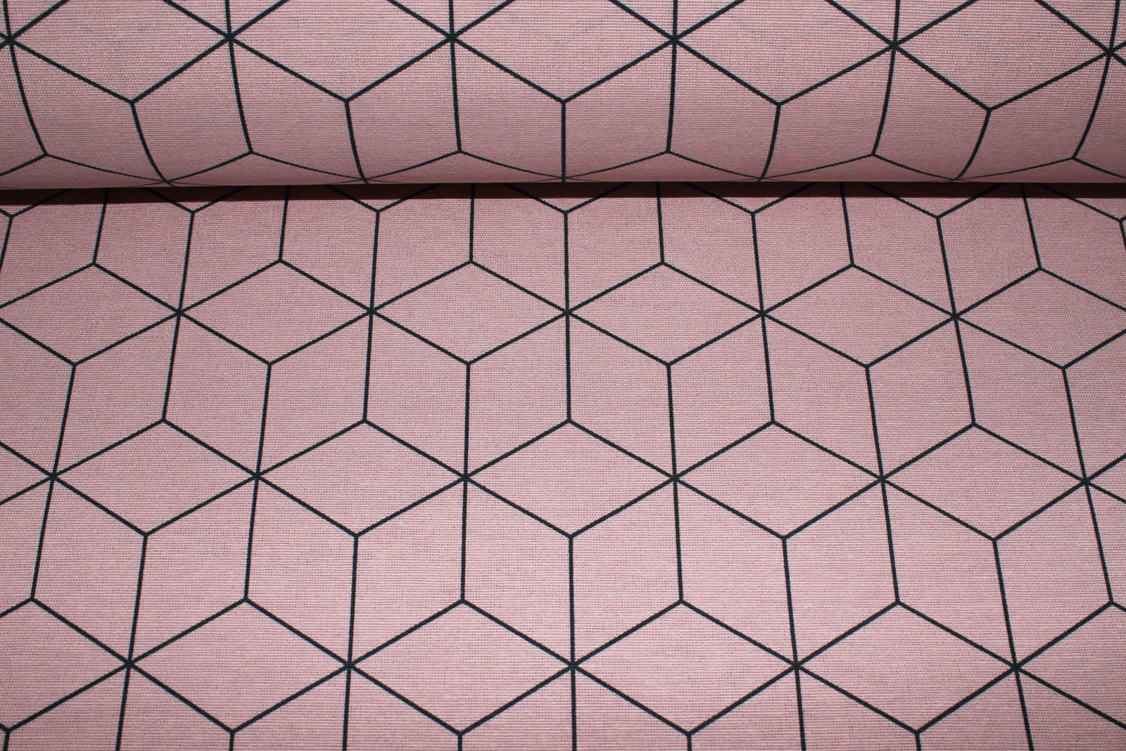 Ein wunderschöner, etwas festerer Dekostoff im Leinen Look mit einem 3D-Würfel- Muster in dusty rose. Super geeignet für Taschen, Kissen, Tischläufer, Deko etc. Der andere Stoff auf dem fünften Foto gehört nicht zu diesem Angebot, sondern soll der Inspiration dienen.