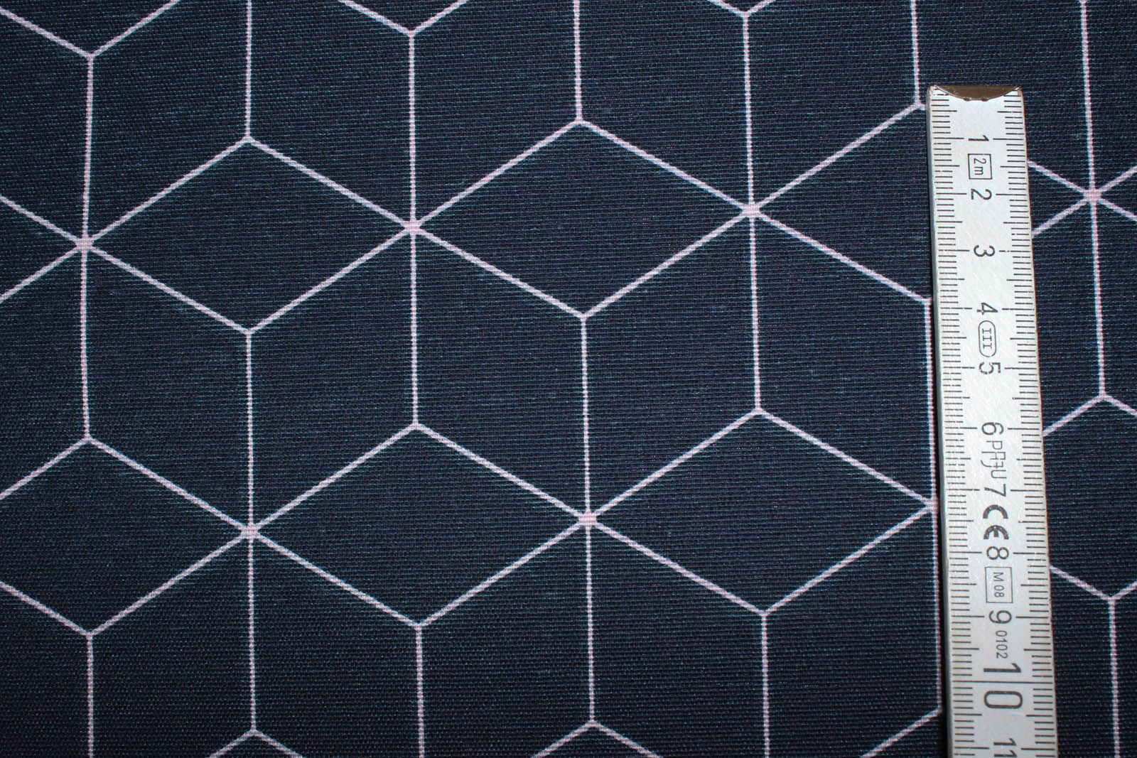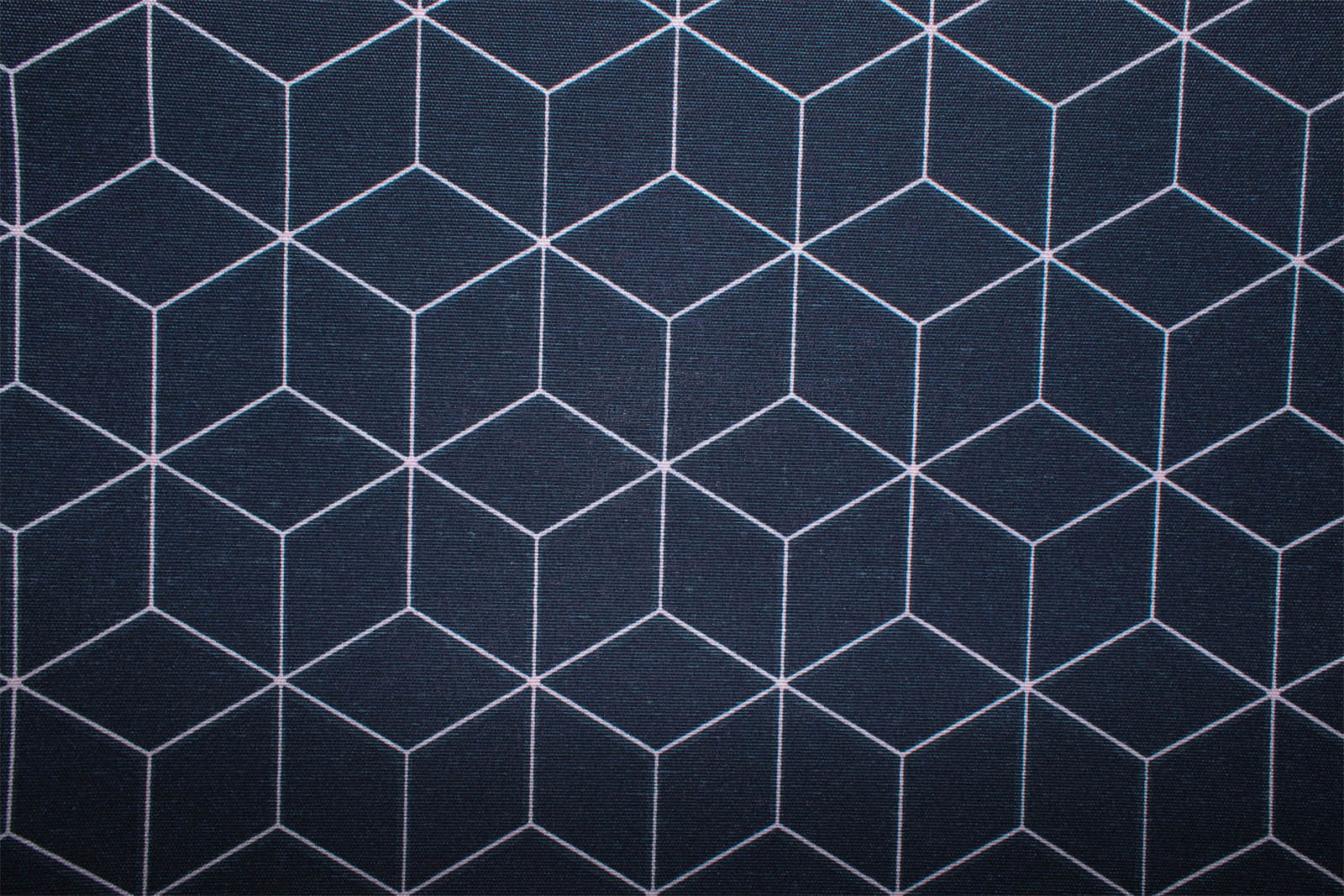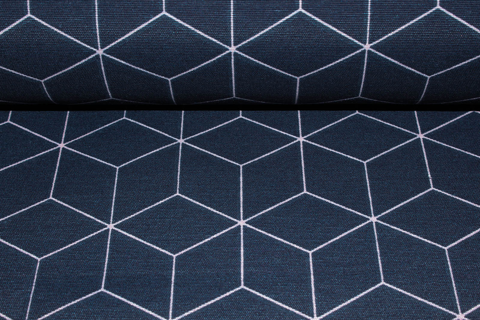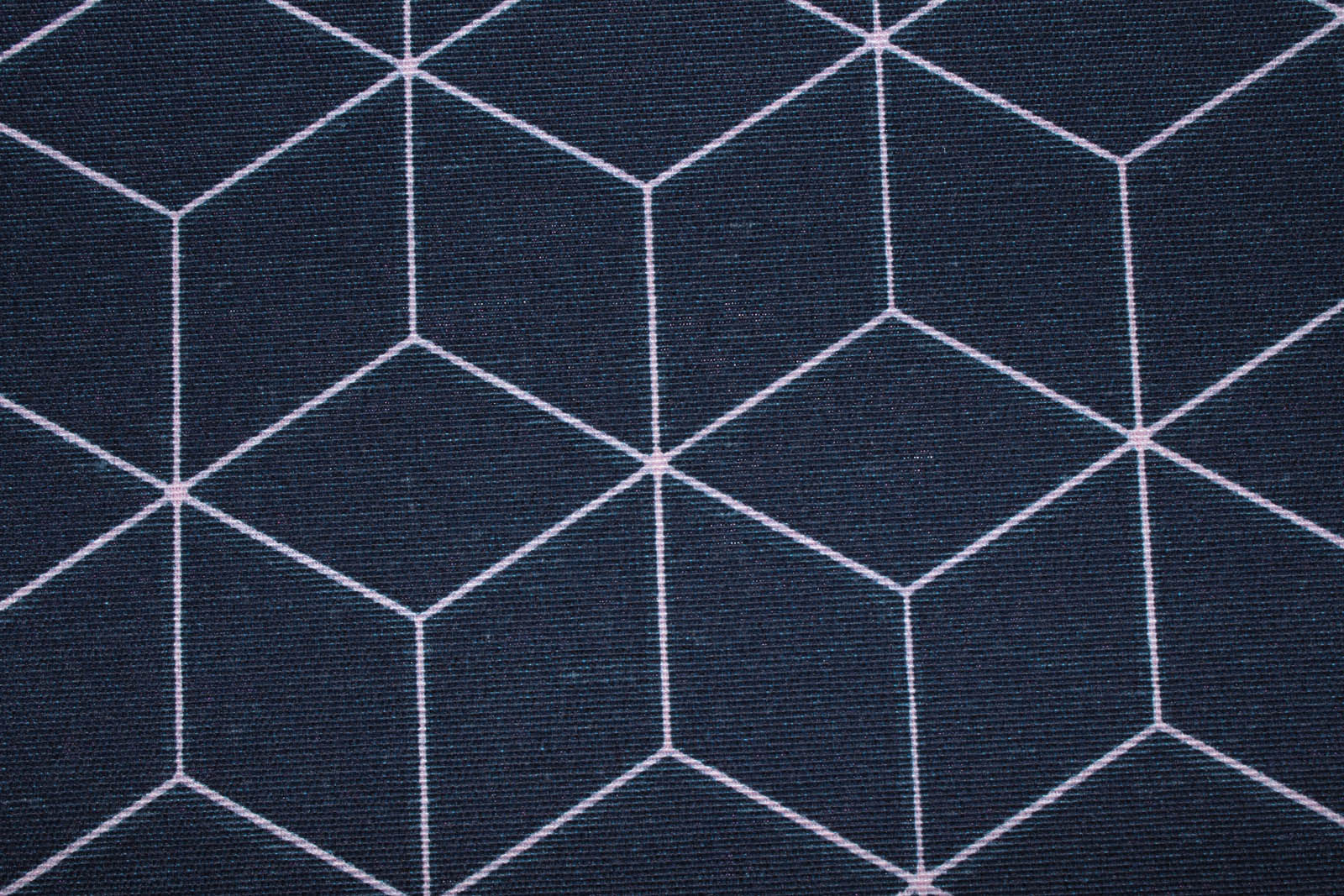 Ein wunderschöner, etwas festerer Dekostoff im Leinen Look mit einem 3D-Würfel- Muster in nachtblau. Super geeignet für Taschen, Kissen, Tischläufer, Deko etc. Die anderen Stoffe auf dem fünften und sechsten Foto gehören nicht zu diesem Angebot, sondern sollen der Inspiration dienen.