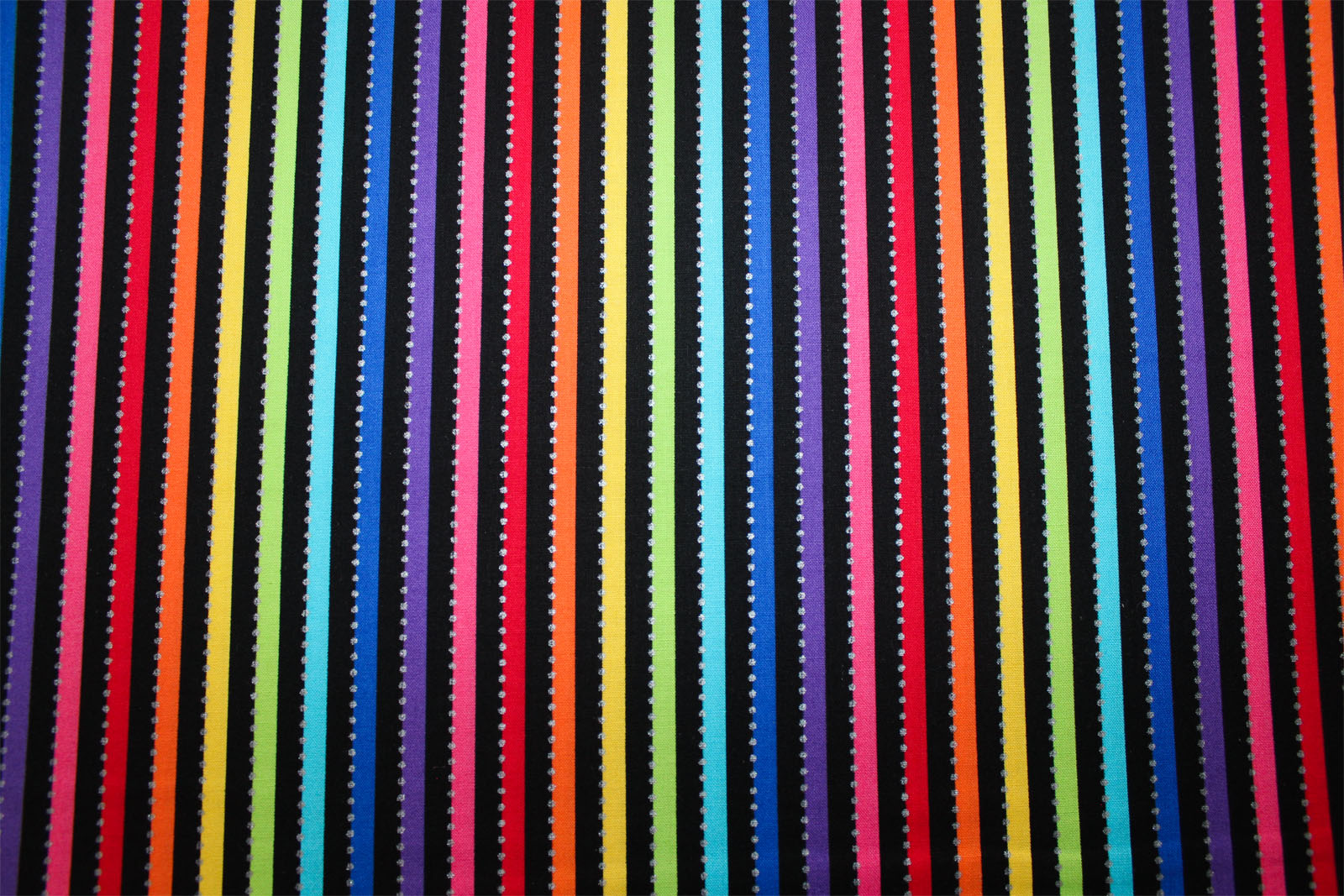 Wunderschöner hochwertiger Designer- Baumwollwebstoff "Be Colourful" Black Rainbow aus dem Hause Anthologie designed by Jaqueline de Jonge. Längsgetreifte Regenbogenstreifen auf schwarzem Untergrund mit silbermetallicfarbenen Punkten. Prima geeignet für farbenfrohe Kissen, Täschchen, Taschen, Patchworkprojekte uvm. Weitere Stoffe und Designbeispiele auf Fotos 3ff. gehören nicht zu diesem Angebot, sondern dienen der Inspiration.