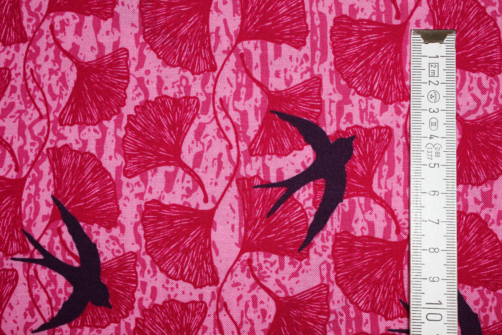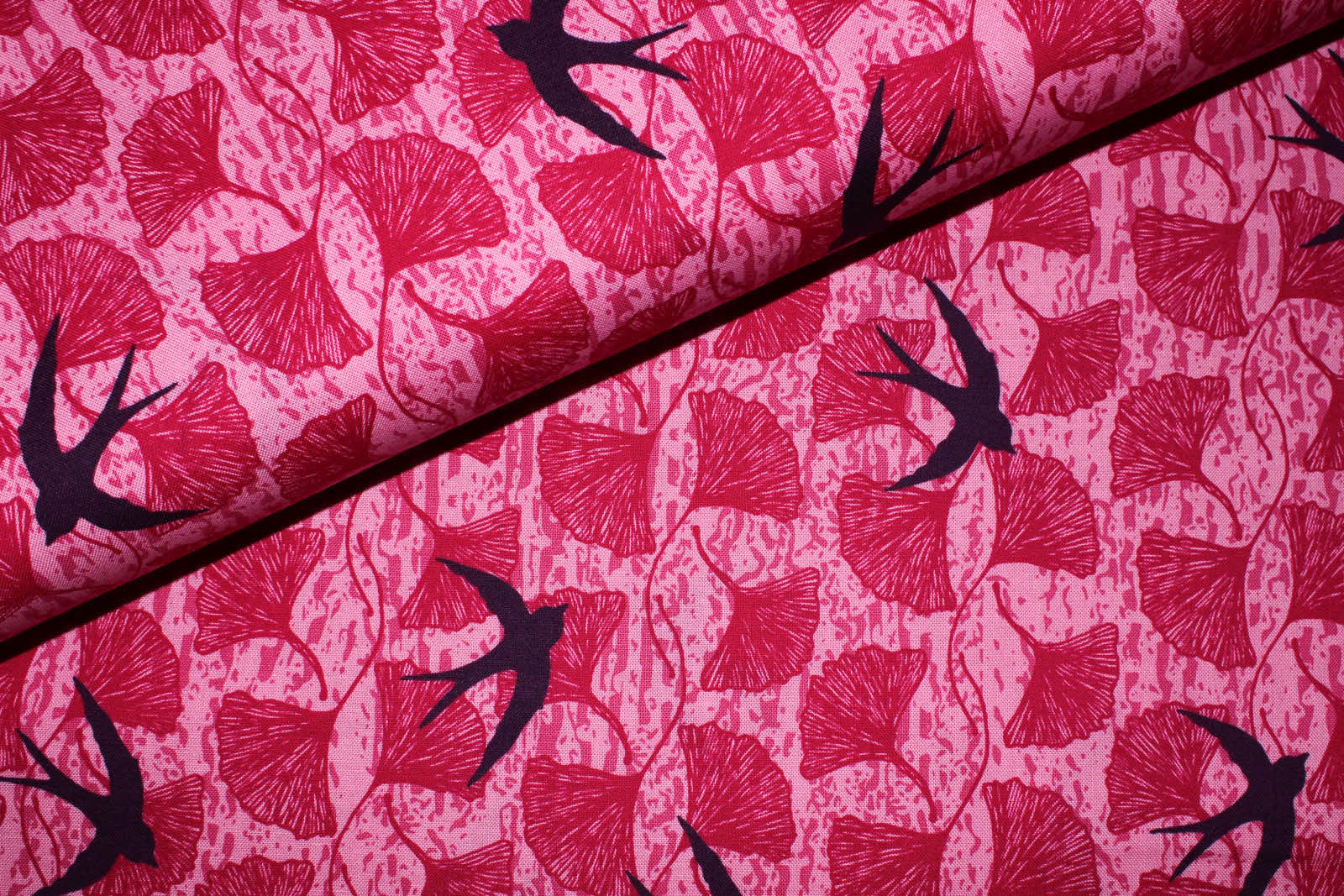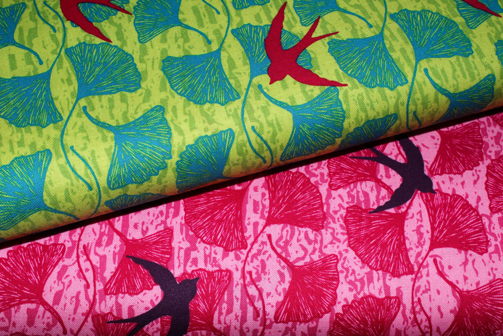 usw. Hier biete ich Euch einen farbenfohen Designer-Baumwollwebstoff Norma- Rose - Songsbirds aus dem Hause Windham designed by Natalie Barnes an. Auf dem rosafarbenen Untergrund tummeln sich fuchsiafarbene Ginkoblätter und Vögel in aubergine. Perfekt geeignet für Taschen, Kosmetiktaschen oder sonstige Accessoires. Der weitere Stoff auf dem vierten Foto gehört nicht zum Angebot, sondern dient der Inspiration.