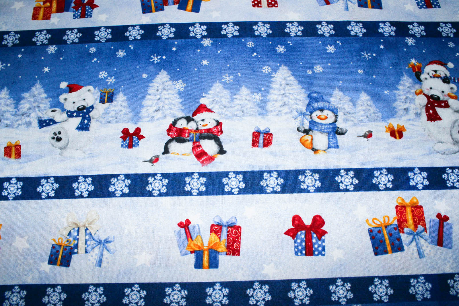 Produkt: Designer-Baumwollstoff Snow what Fun Repeating Stripe