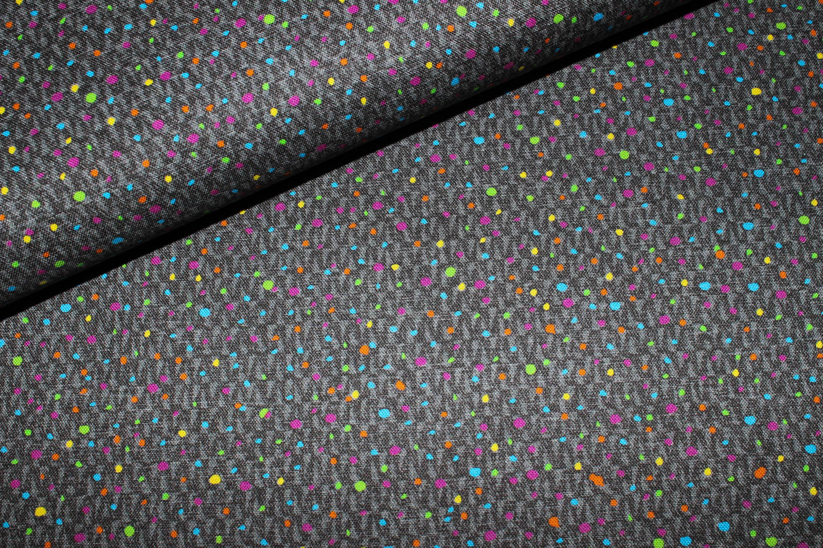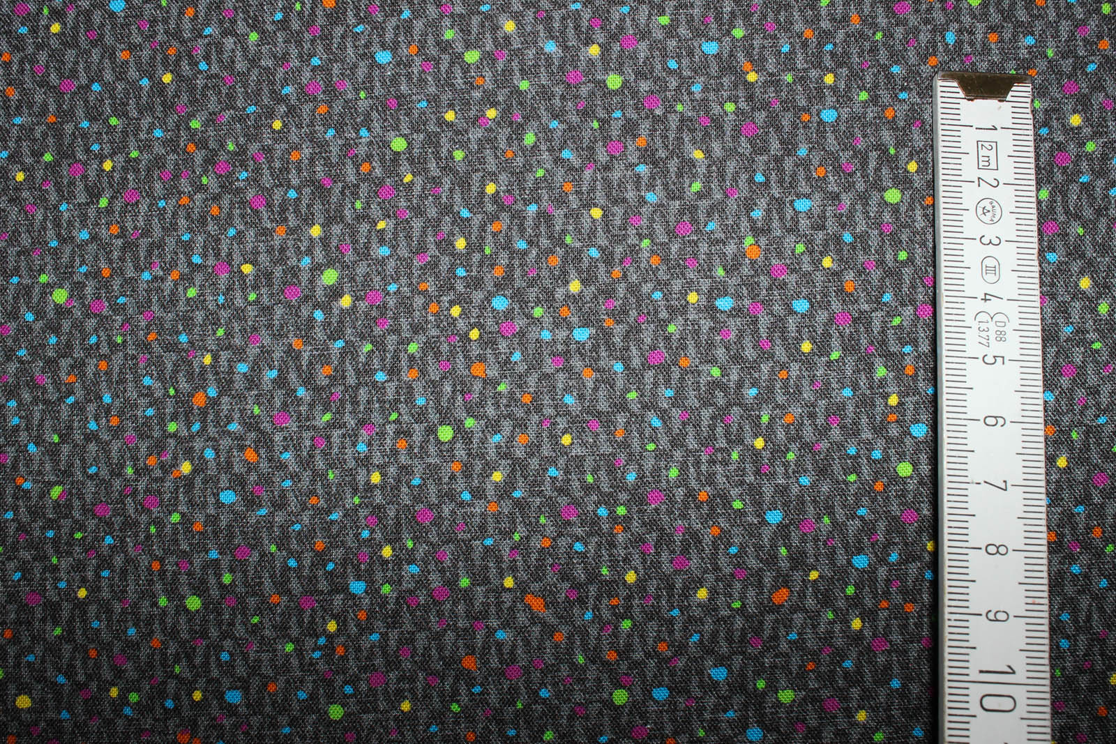usw.Hier biete ich Euch einen ausgefallenen Designerbaumwollwebstoff Dappled Greys designed by Studio RK für Robert Kaufmann Fabrics an. Mit farbenfrohen Konfettis auf einem graugemusterten Untergrund.