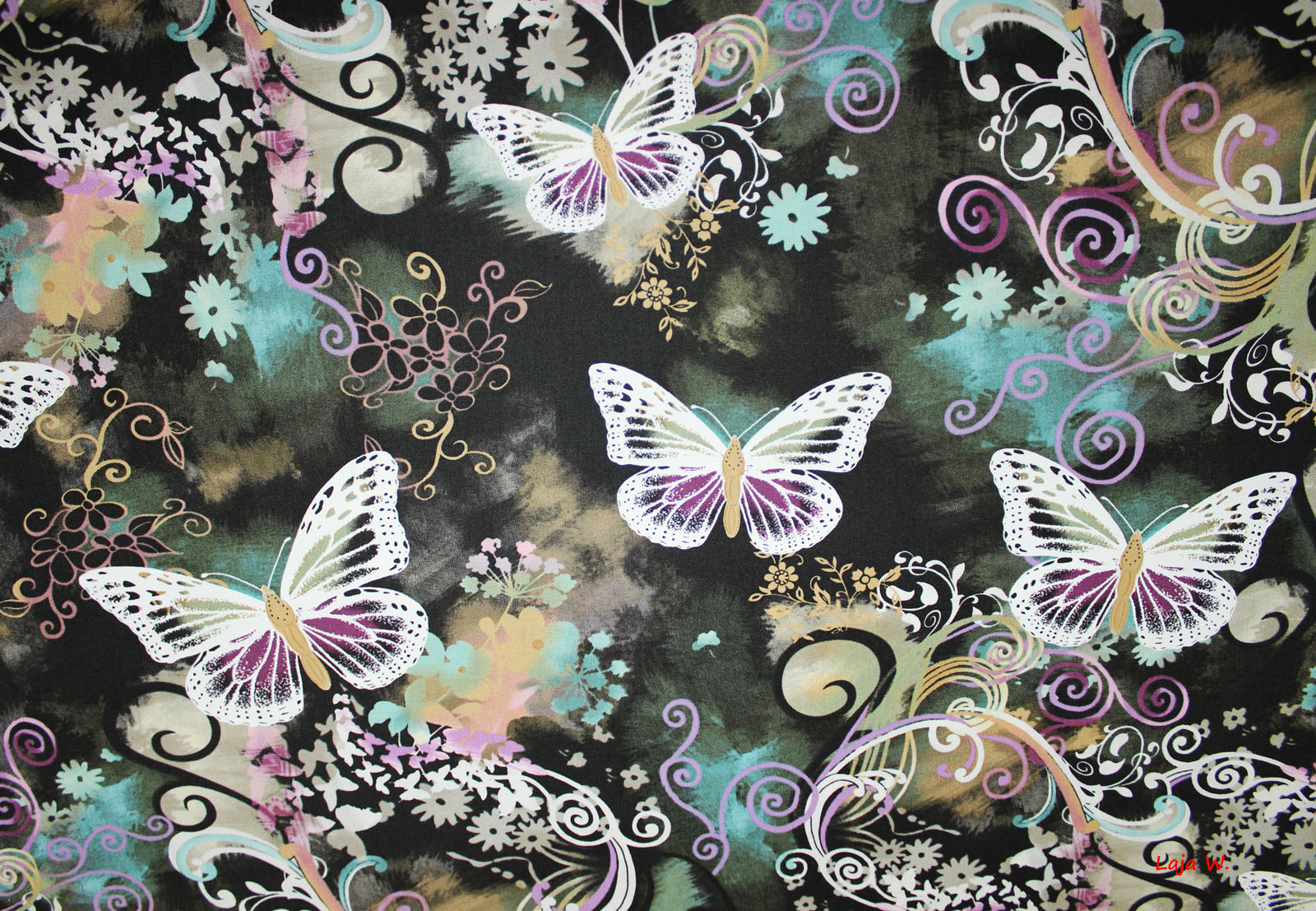 Hier biete ich Euch einen ausgefallenen Designerstoff "Filigree Flutter" aus dem Hause Michael Miller mit Blumenranken und Schmetterlingen an.