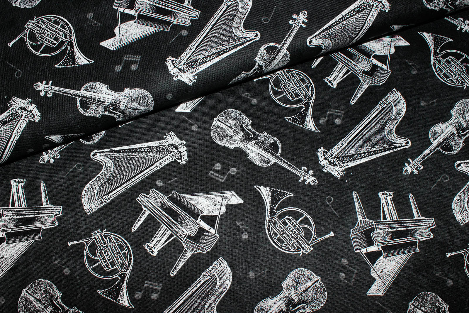 usw.Hier biete ich Euch einen hochwertigen Designerbaumwollwebstoff "Noten-Vintage Style" aus dem Hause Wilmington "Interlude" by Artly an. Der Stoff ist in einer Vintage- Optik bedruckt. Der Untergrund ist also nicht schwarz, sondern weist dezent marmorierte dunkelgraue Stellen auf, die dem musikalischen Stoff diesen einzigartigen Vintage- Charakter geben. Aufgrund des Musters eignet sich der Stoff wunderbar für Accessoires, wie Kosmetiktäschchen, Taschen, Buchhüllen, Flötentaschen uvm. Die Stoffe auf dem vierten Foto gehören nicht mit zum Angebot, sondern dienen der Inspiration.