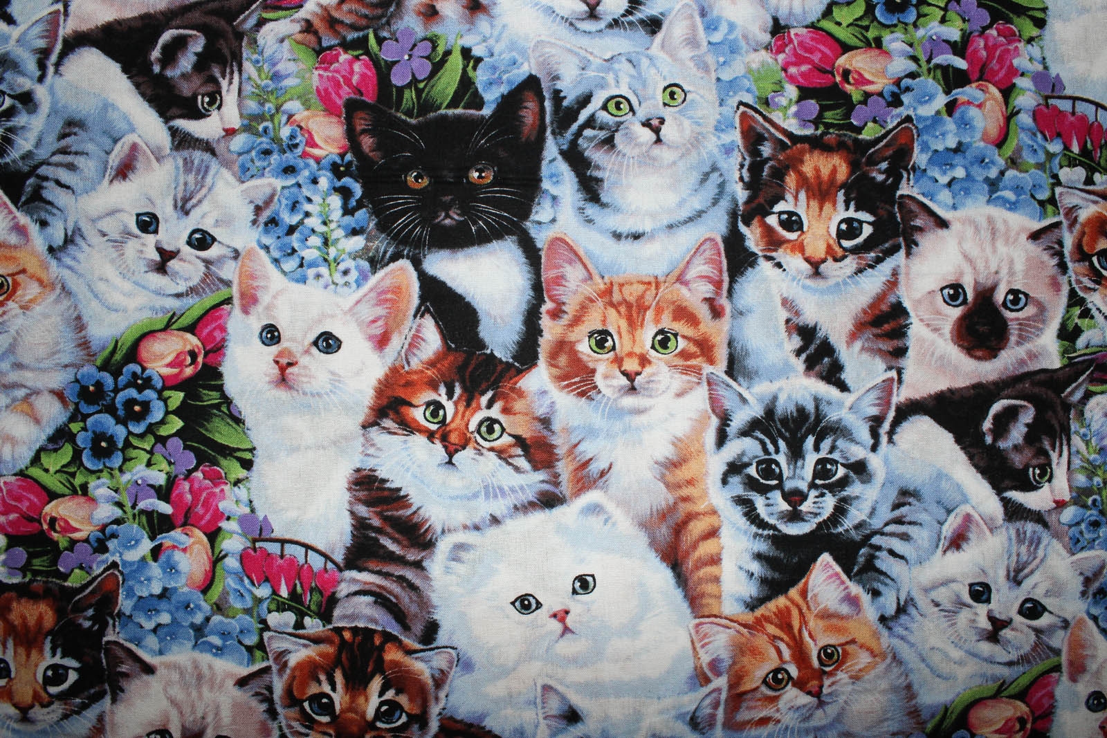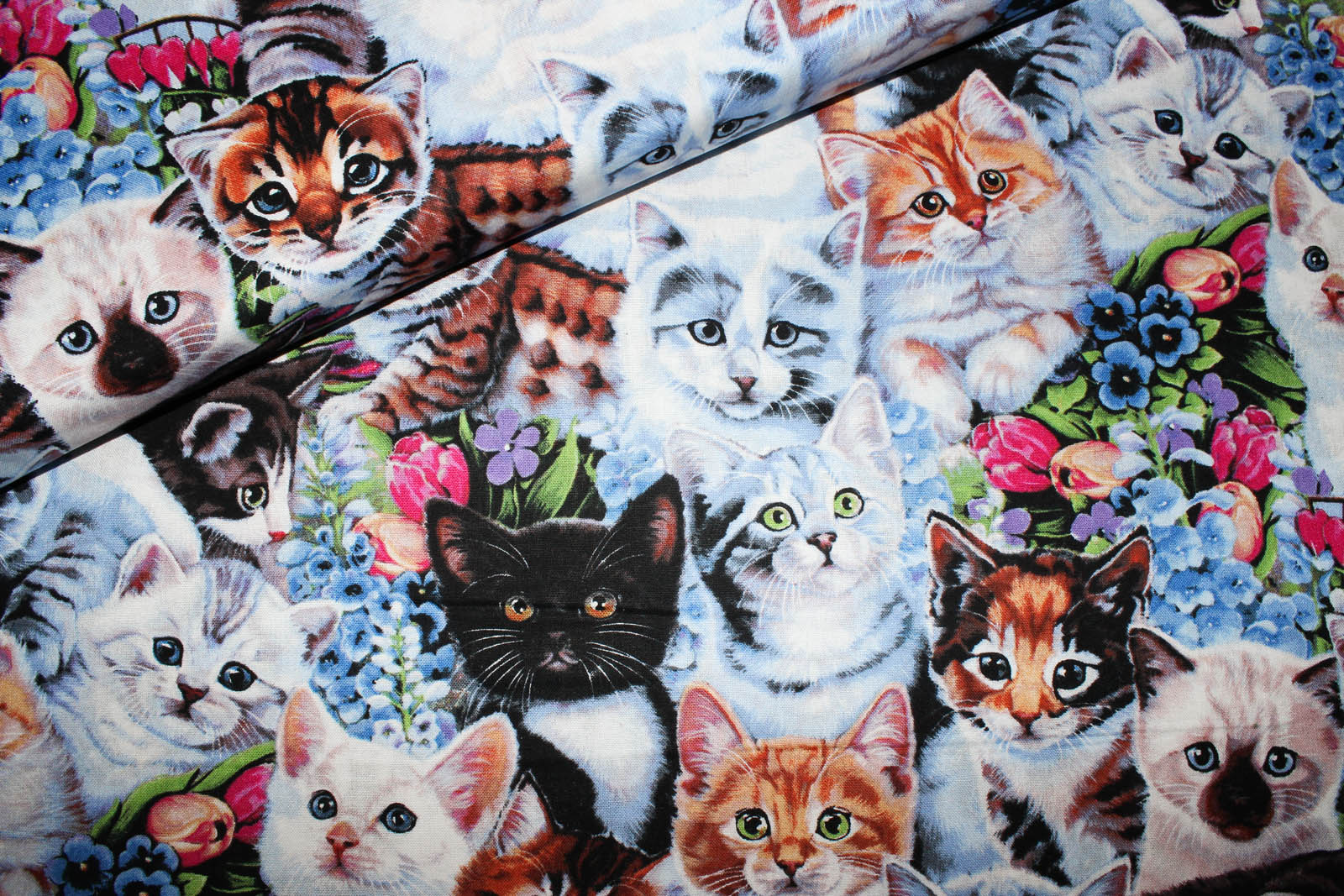 usw.Niedlicher Baumwollweb-Designerstoff "Kitten and Flowers" aus dem Hause David Textiles in Digitaldruckqualität. Ideal für Kissen, Taschen, Homedeko uvm. Auf der Webkante steht, dass dieser Stoff nur für den privaten Gebrauch nutzbar ist. Gewerbliche Verarbeitung wird leider untersagt.