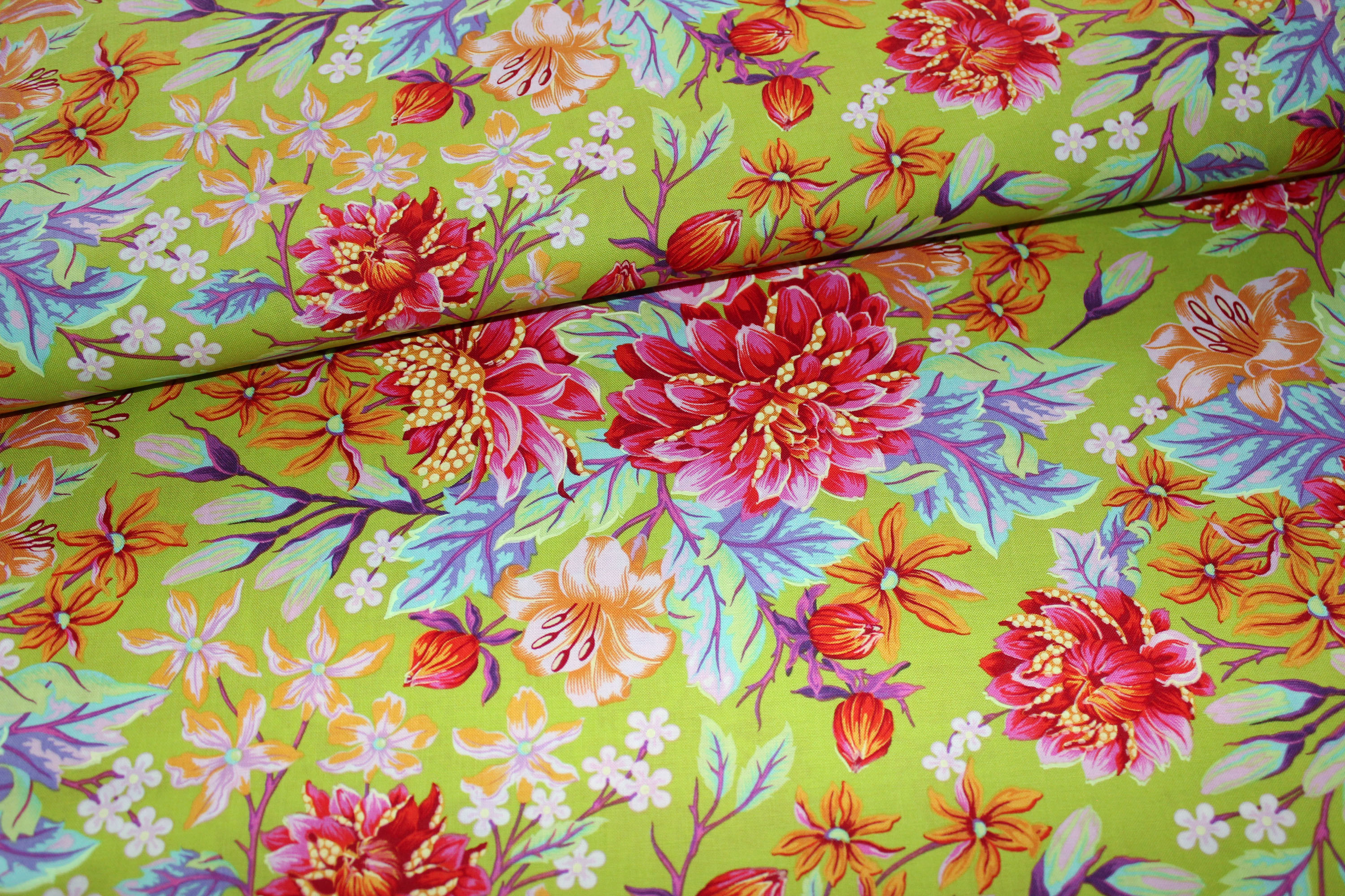 Hier biete ich Euch einen ausgefallenen Baumwollwebstoffstoff "Hello Dahlia" von Tula Pink aus der Serie "Untamed" an. Der Untergrund ist grüngelb. Ideal geeignet für Taschen, Geldbörsen, Accessoires und Bekleidung. Bitte beachten Sie, dass eventuell abgebildete zusätzliche Stoffe, Zubehör oder Designbeispiele auf weiteren Fotos nicht zum Angebot gehören, sondern lediglich der Inspiration dienen.