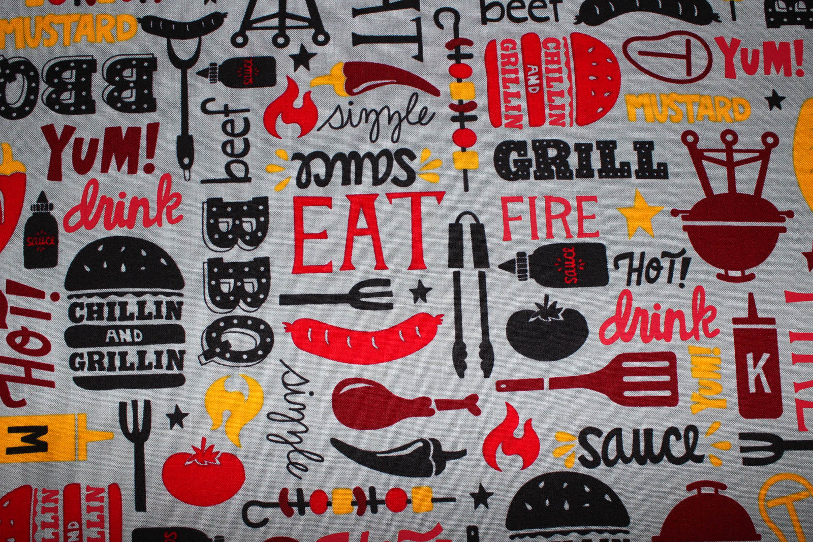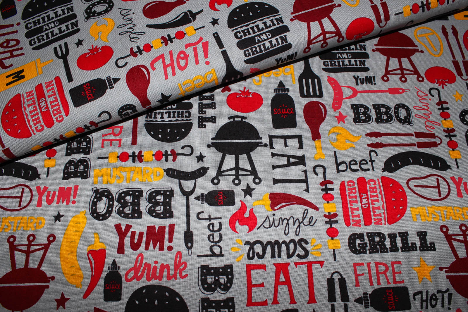 usw.Hier biete ich Euch einen ausgefallenen Designerbaumwollwebstoff designed by Emily Dumas aus der Serie Peace, Love and BBC für Henry Glas Fabrics an. Ideal für Kissen, Paltzdecken, Tischläufer u.ä. für die nächste Grillparty. Die Stoffe auf dem vierten Foto gehören nicht zum Angebot, sondern dienen der Inspiration.