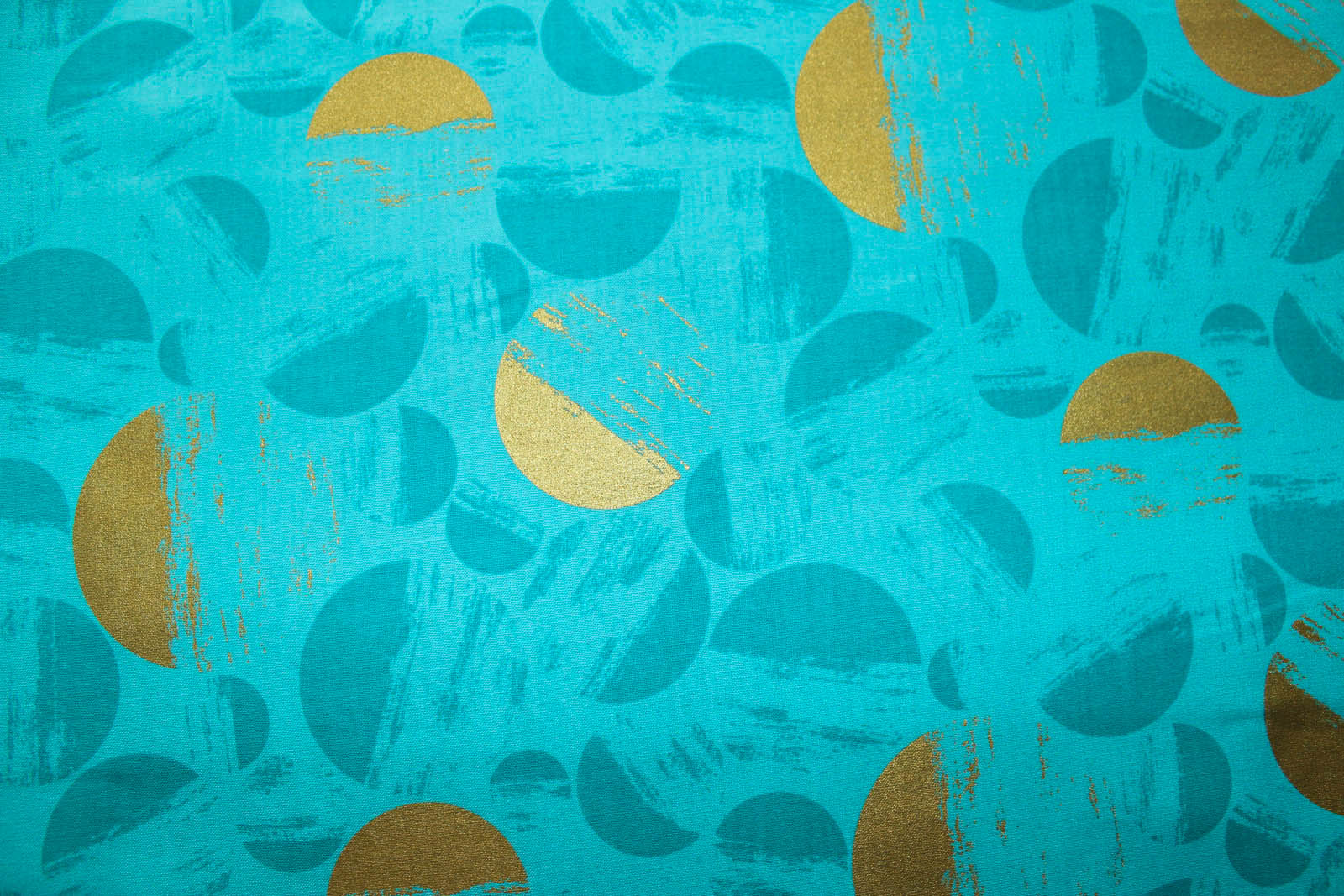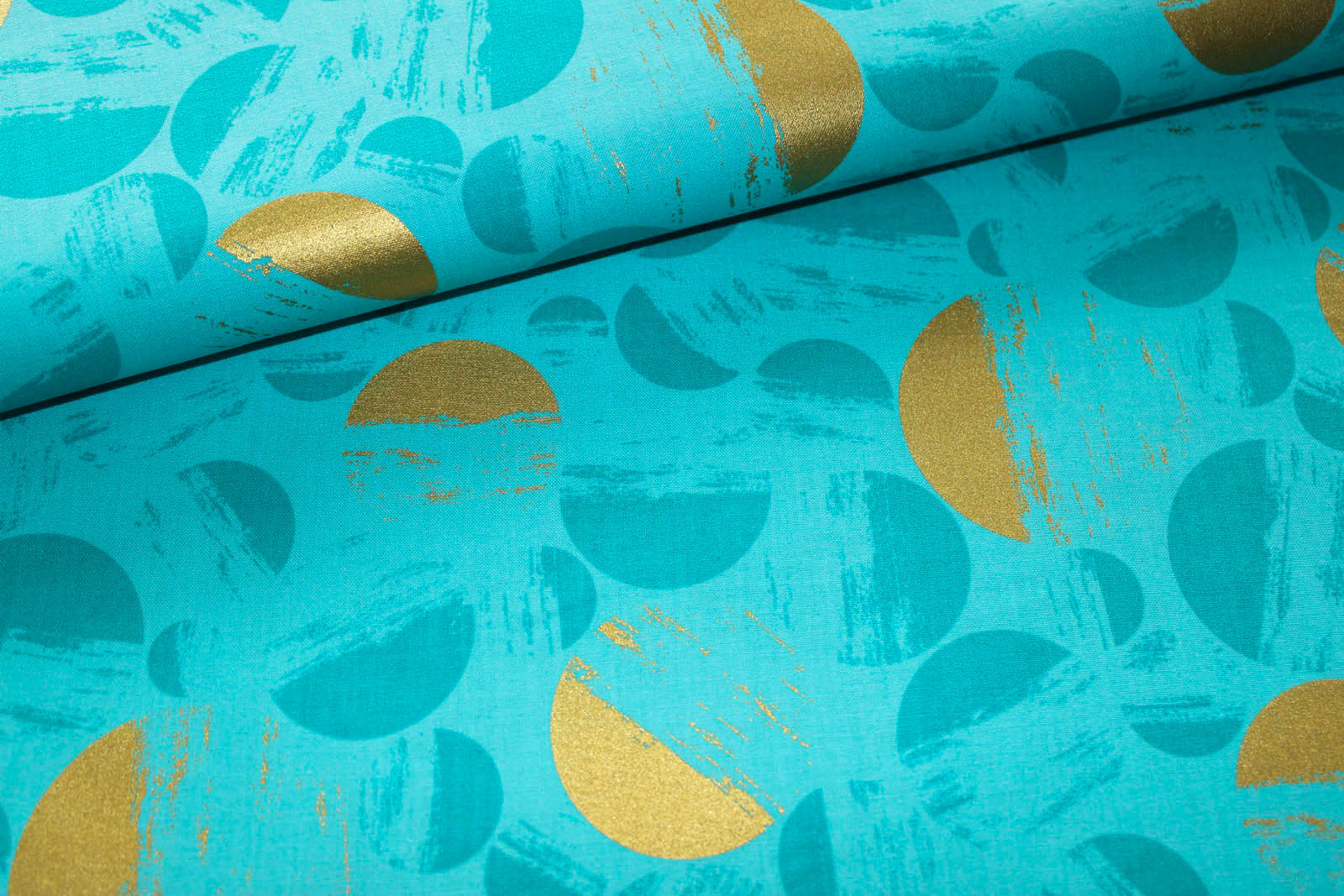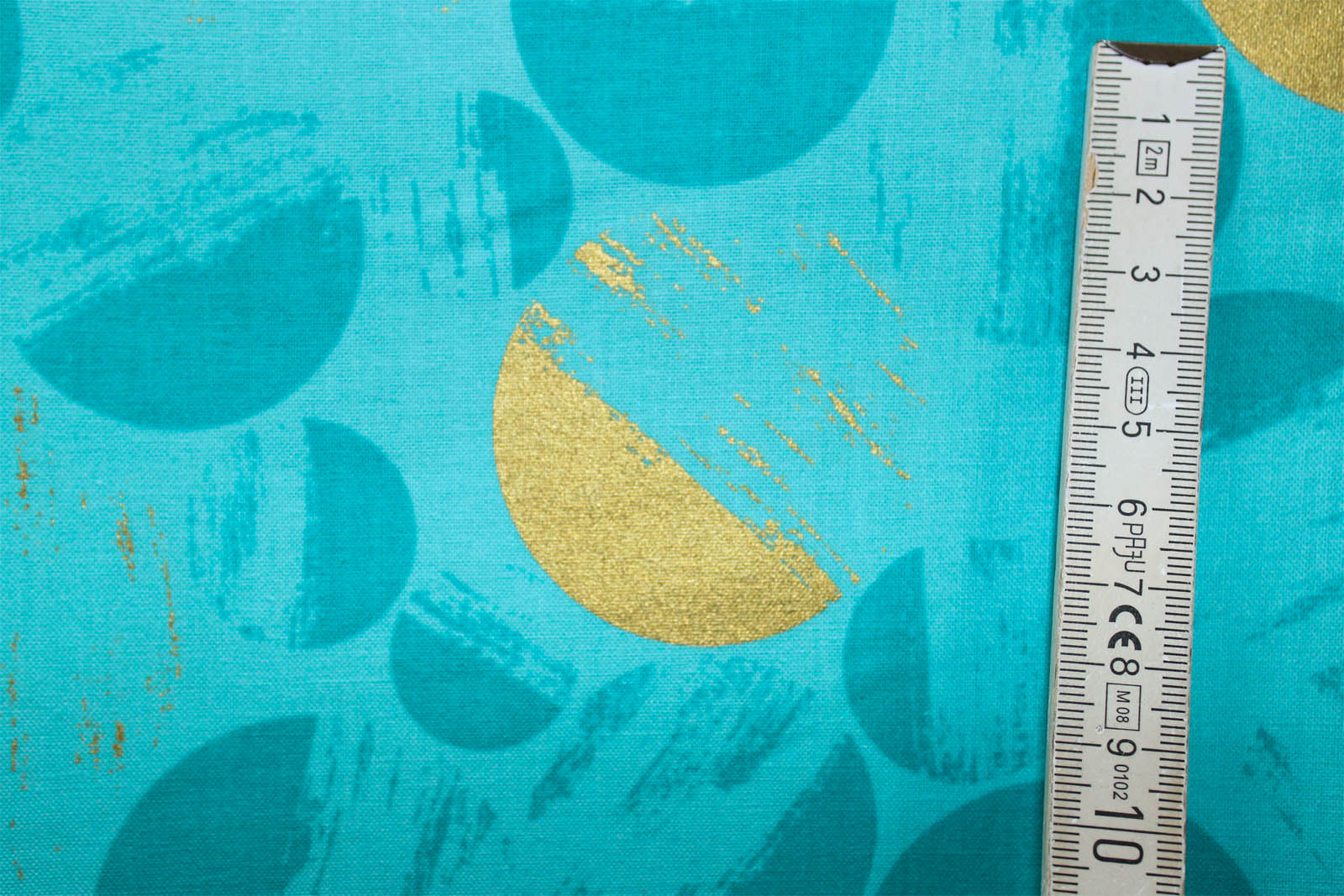 usw. Hier biete ich Euch einen wundervollen Designer-Baumwollwebstoff "Brushy metallic" aus der Serie "Wishwell" von Robert Kaufman an. Mit metallicgoldenen Akzenten auf einem türkisen Untergrund. Perfekt geeignet für Taschen, Kissen, Homedeko oder ausgefallene Bekleidung.