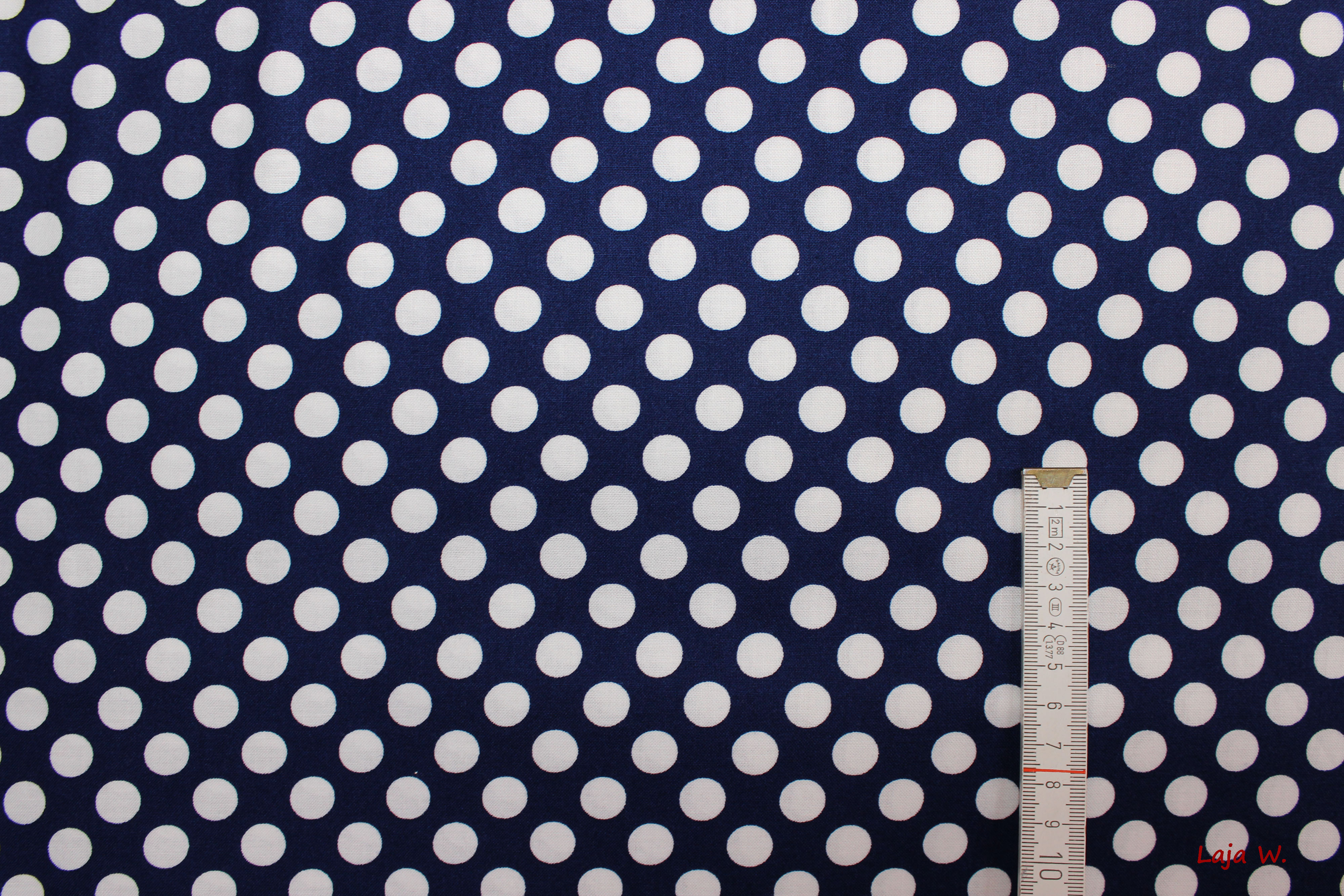 Hier biete ich Euch einen ganz tollen Designerbaumwollwebstoff von Michael Miller in der Farbe dunkelblau mit weißen Punkten an. Die Punkte haben einen Durchmesser von ca. 1,1 cm.
