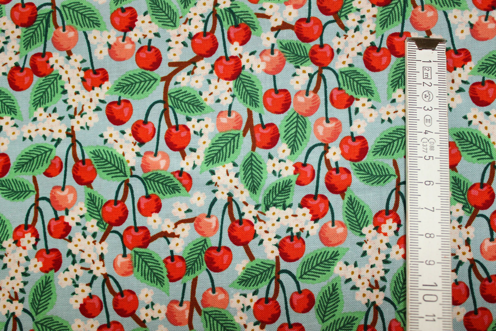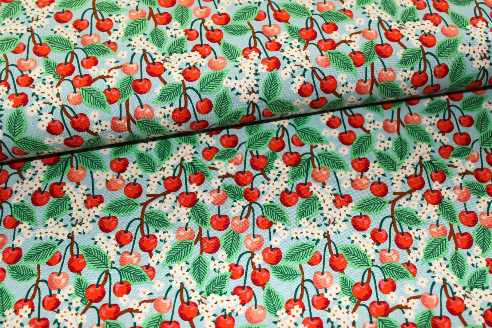 usw.Produkt: Designerbaumwollstoff Orchard - Cherry Blossom light blue