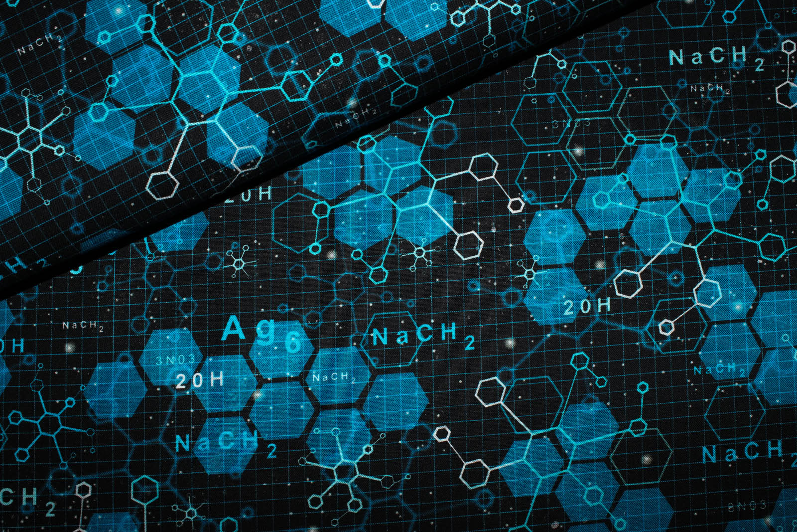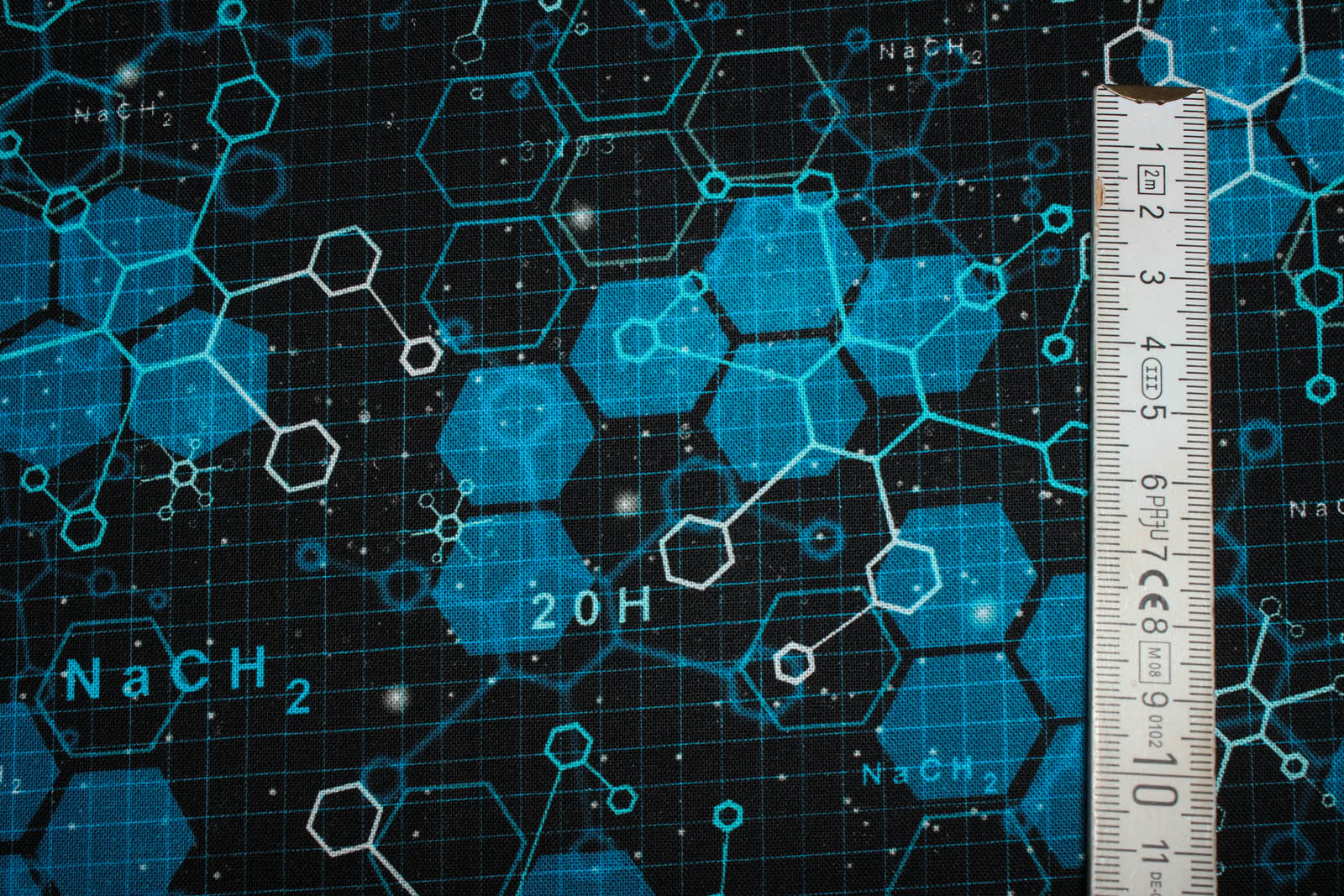 Toller ausgefallener Designer- Baumwollwebstoff mit Molekülen und chemischen Formeln aus dem Hause Robert Kaufman. Ideal geeignet für Taschen, Untensilos, Kissen uvm.Daraus lassen sich tolle individualisierte Geschenke für bestimmte Berufsgruppen (Chemiker, Lehrer, Forscher usw.) nähen. Der Untergrund des Stoffes ist schwarz mit kleinen blauen Karos. Die Stoffe auf dem vierten Foto, dienen der Inspiration und gehören nicht mit zum Angebot.