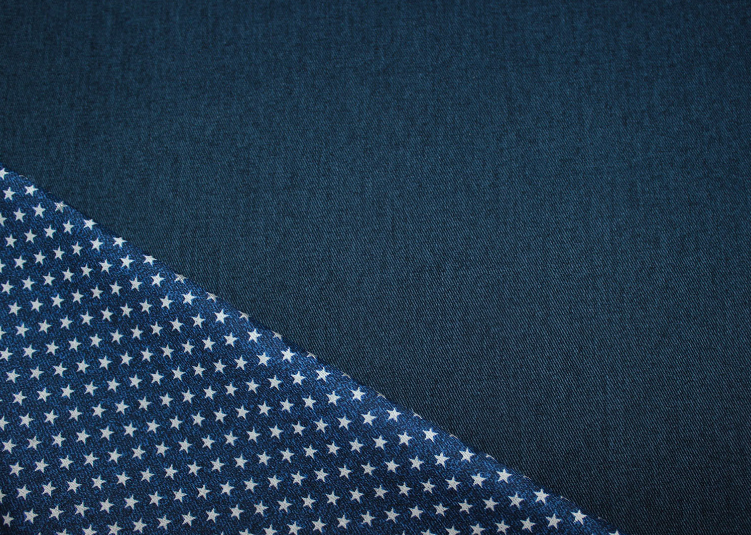 Außergewöhnlicher und sehr hochwertiger Doubleface- Jeans aus dem Hause Cosmo. Die Vorderseite ist ein blauer leicht melierter Jeansstoff und die Rückseite ist blau und hat kleine weiße Sternchen (ca. 0,5 cm groß). Wunderbar für Röcke, Hosen und Jacken, auch für Taschen und Accessoires prima geeignet. Durch die gemusterte Abseite kann man richtig tolle Akzente setzen. Diesen Stoff gibt es auch noch in einer anderen Doubleface- Rückseite bei uns, siehe Foto 3.