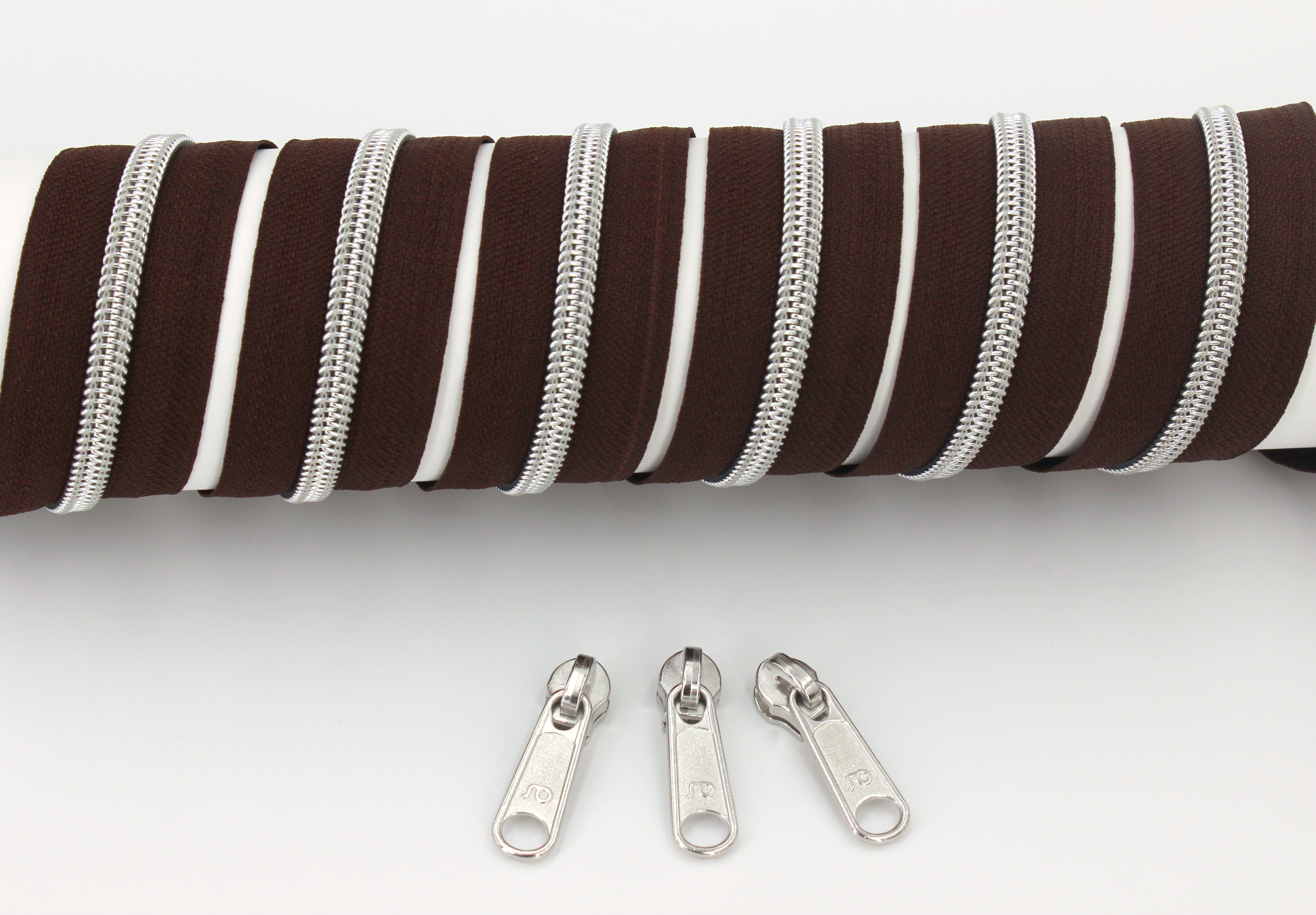 Produkt: Endlosreißverschluss metallisiert dunkelbraun/ silber