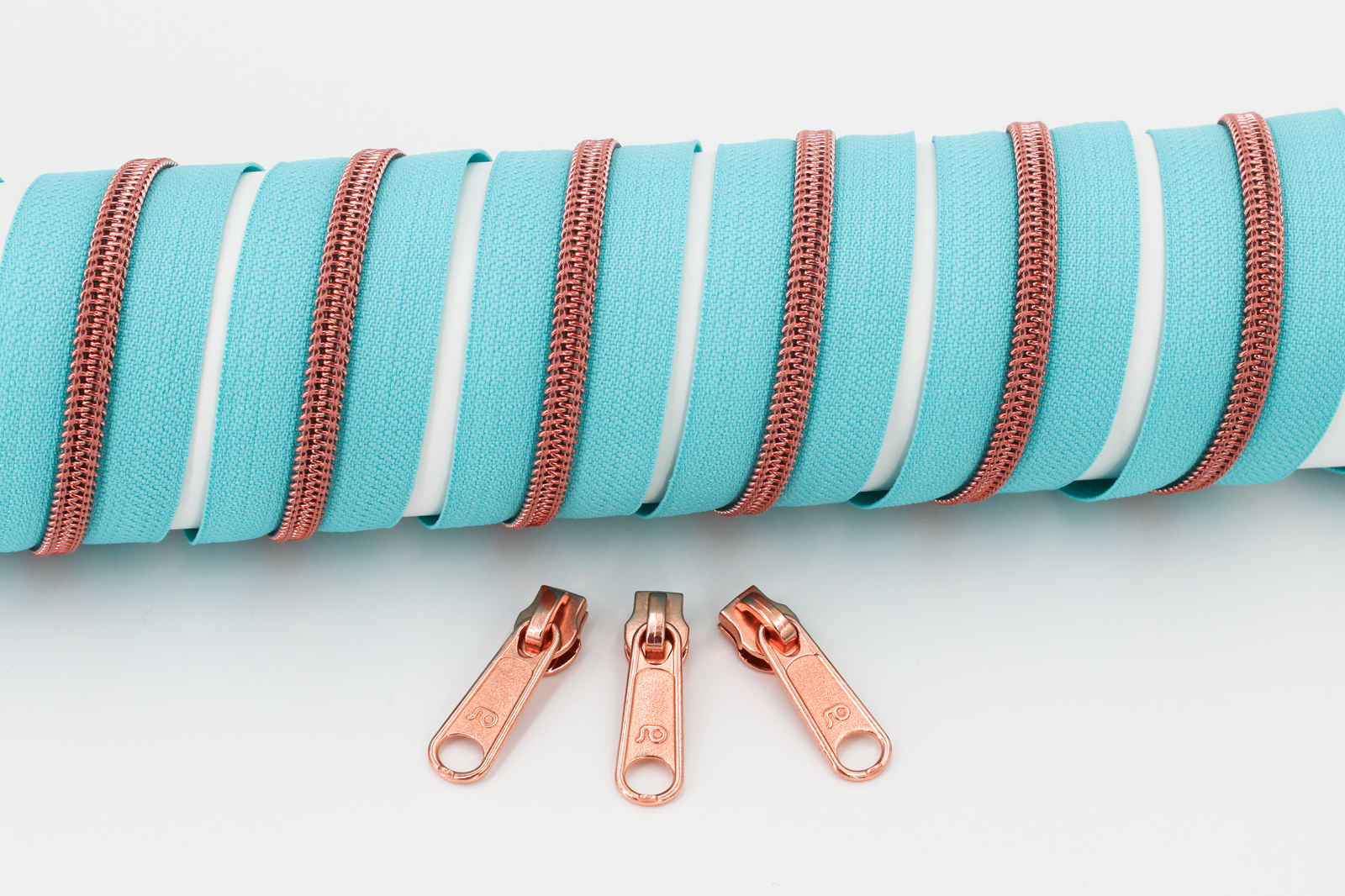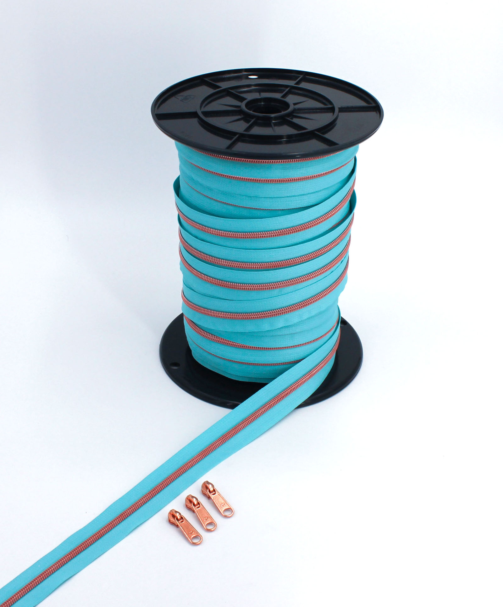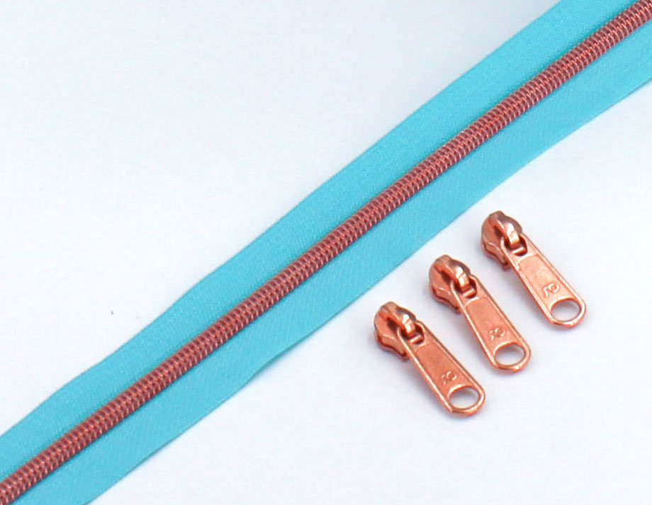 Produkt: Endlosreißverschluss metallisiert helltürkis/ kupfer