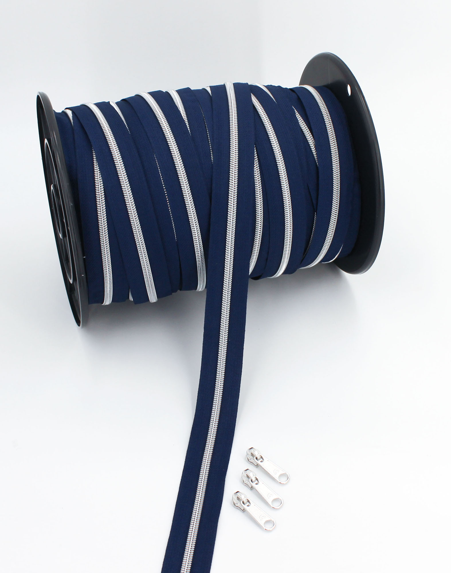 Meterware Endlosreißverschluss inkl. 3 passenden losen Bügelschiebern je Meter