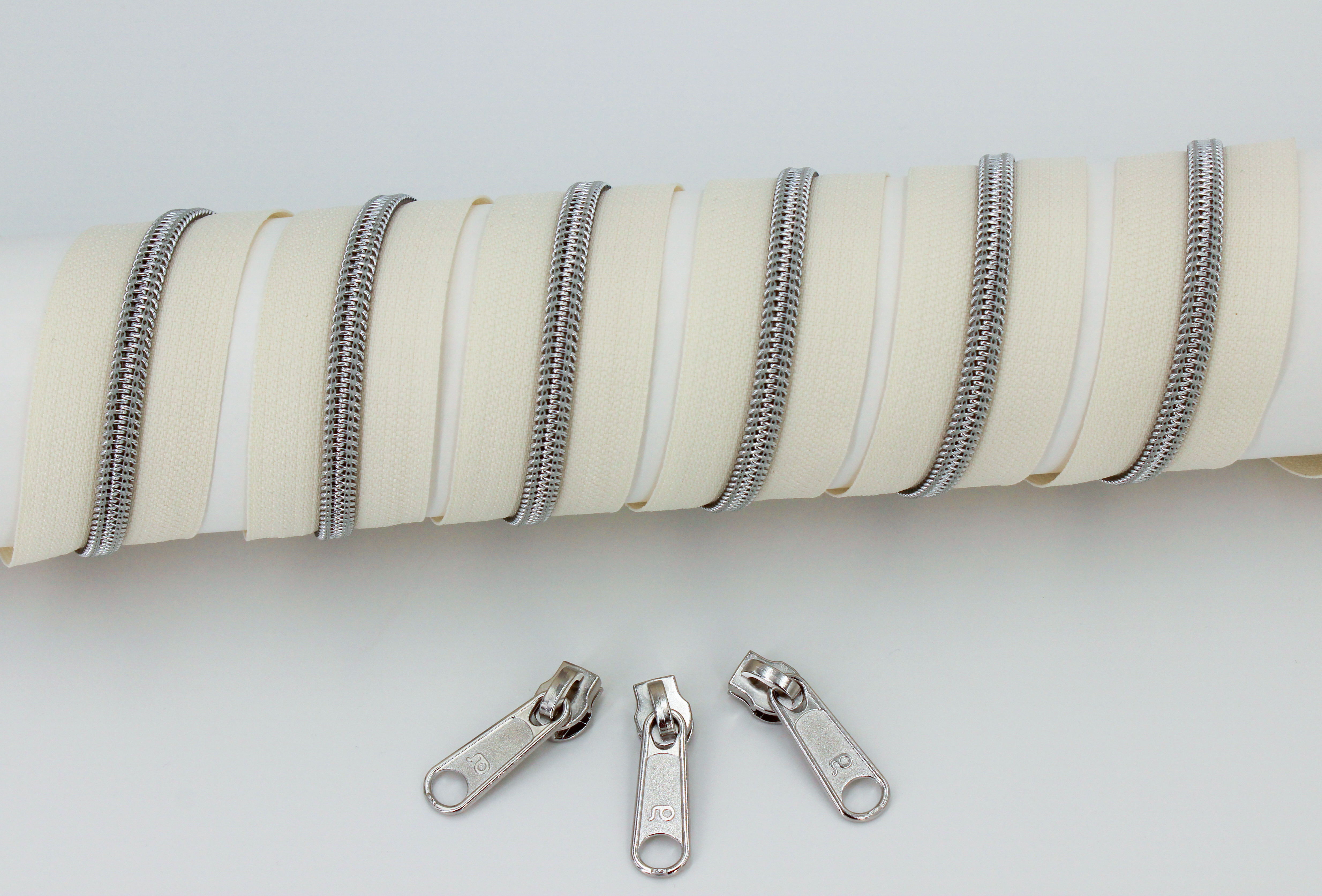 Meterware Endlosreißverschluss inkl. 3 passenden losen Bügelschiebern je Meter