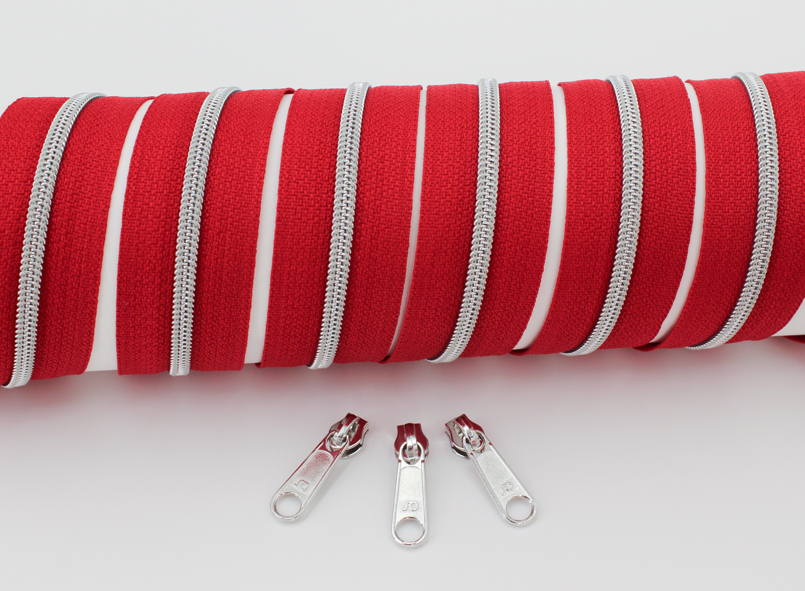 Produkt: Endlosreißverschluss metallisiert schmal dunkleres rot/silber