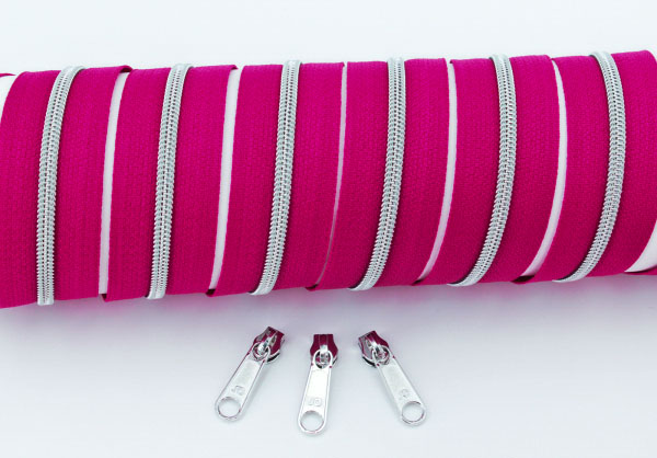 Produkt: Endlosreißverschluss metallisiert schmal fuchsia/silber