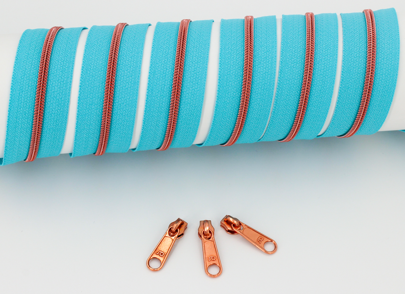 Produkt: Endlosreißverschluss metallisiert schmal helltürkis/kupfer