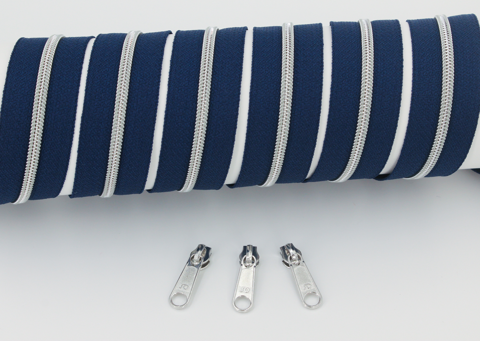 Produkt: Endlosreißverschluss metallisiert schmal marine/silber