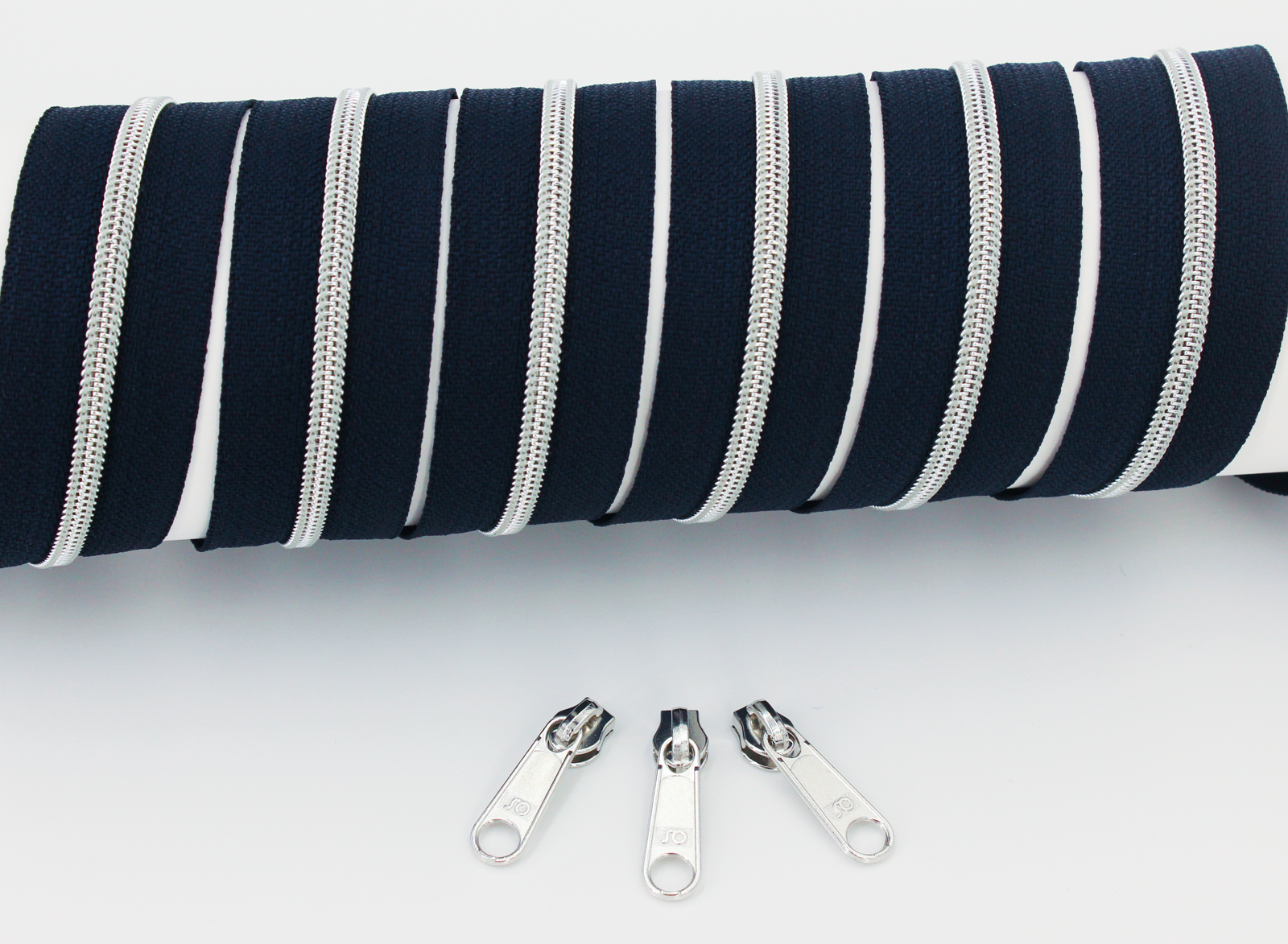 Meterware Endlosreißverschluss inkl. 3 passenden losen Bügelschiebern je Meter