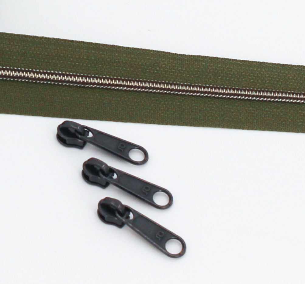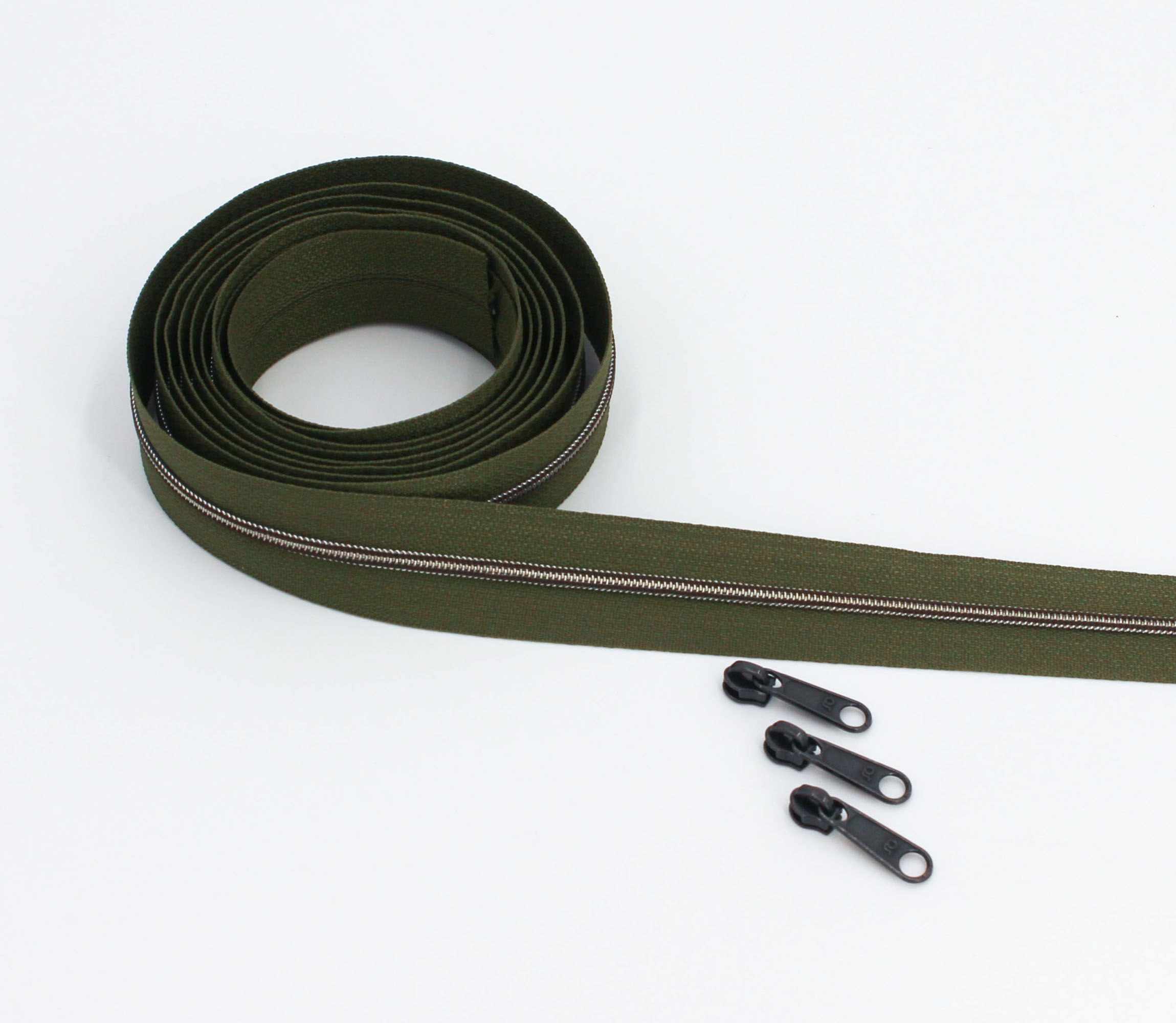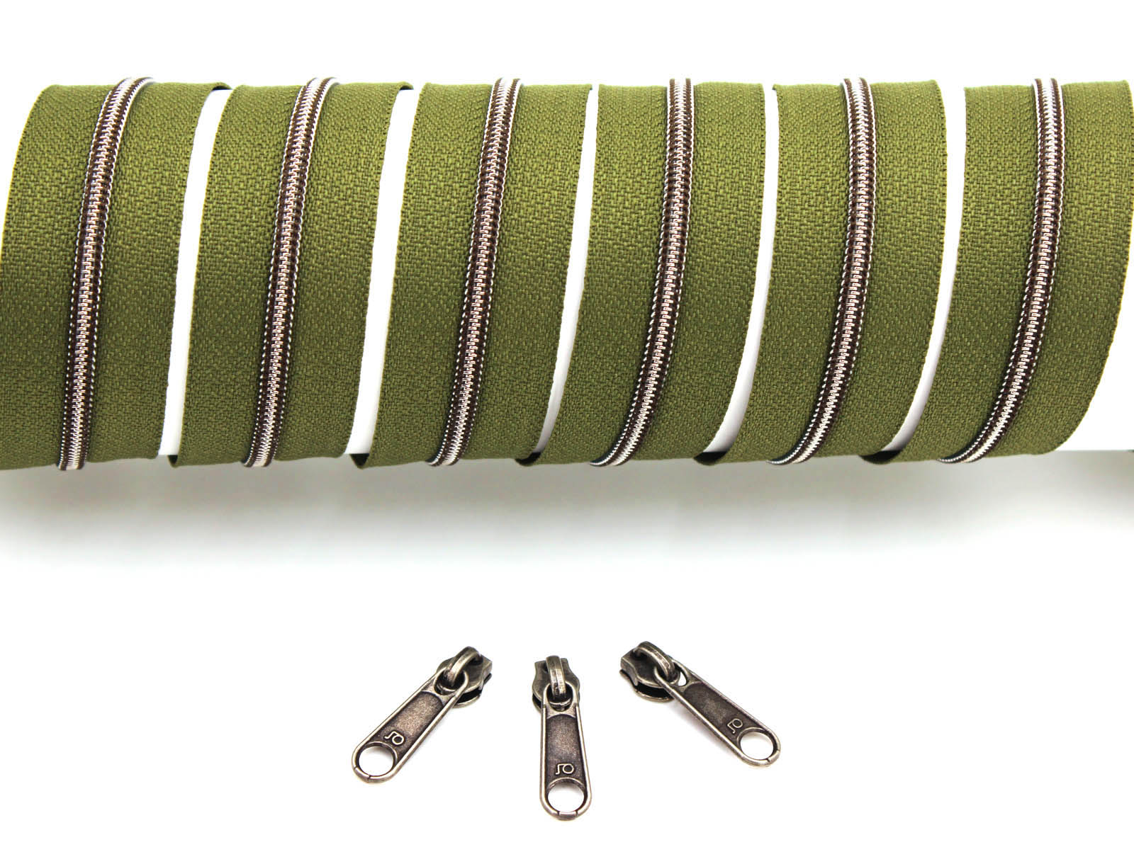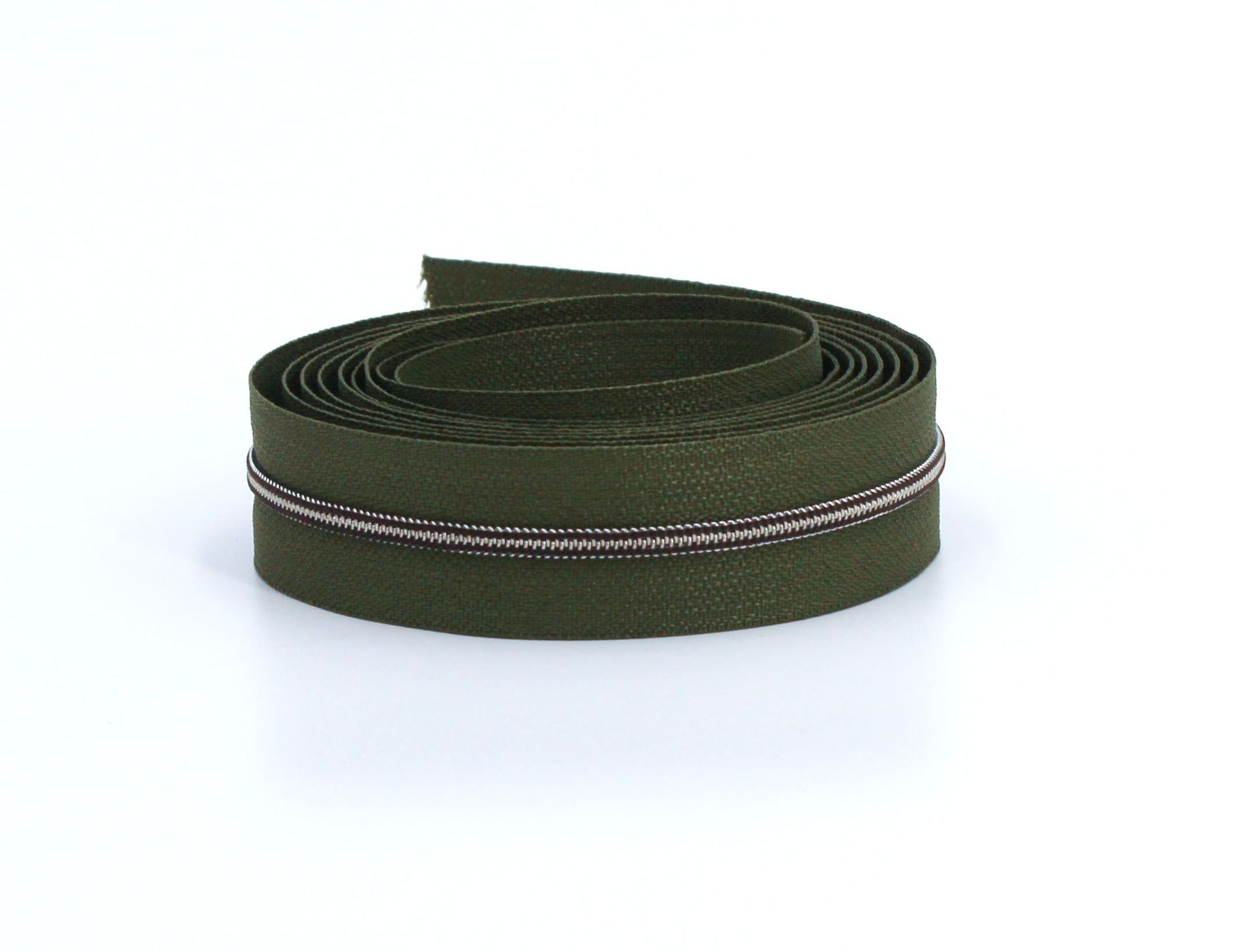 Produkt: Endlosreißverschluss metallisiert schmal olivgrün/ oxyd