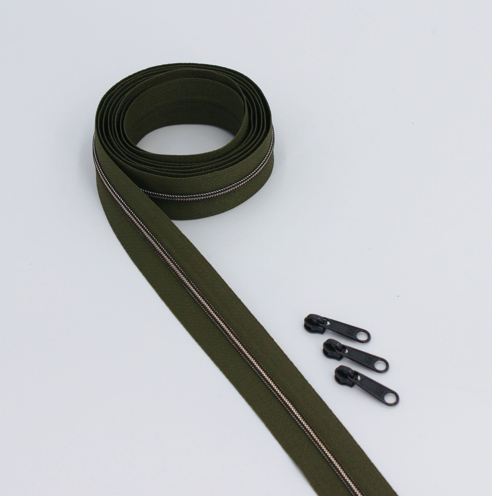 Meterware Endlosreißverschluss inkl. 3 passenden losen Bügelschiebern je Meter