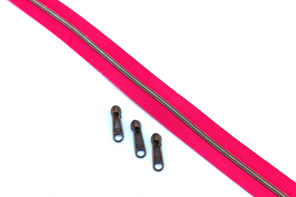 Produkt: Endlosreißverschluss metallisiert schmal pink/messing-antik