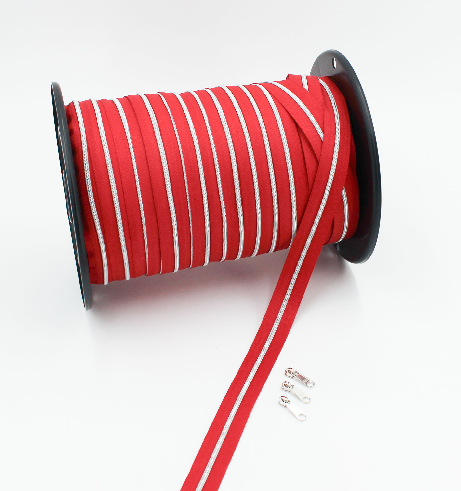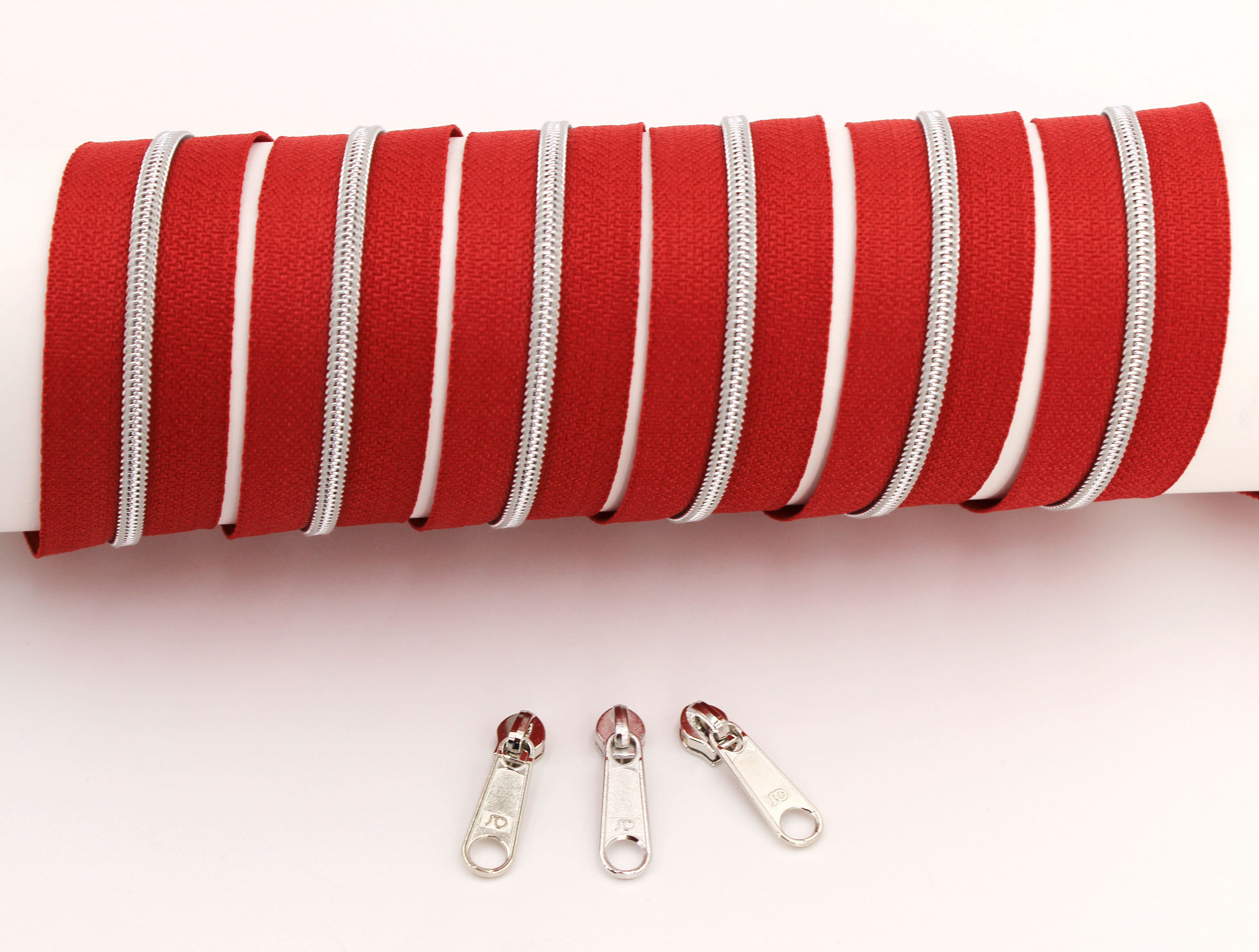 Produkt: Endlosreißverschluss metallisiert schmal rot/silber