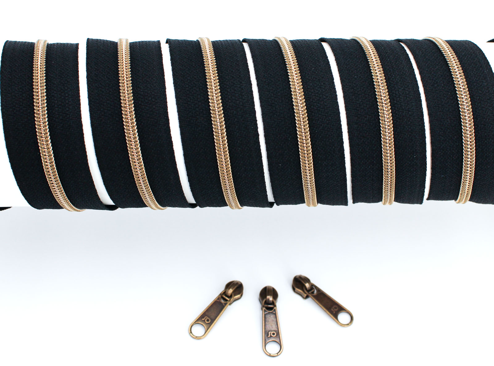 Produkt: Endlosreißverschluss metallisiert schmal schwarz/messing-antik