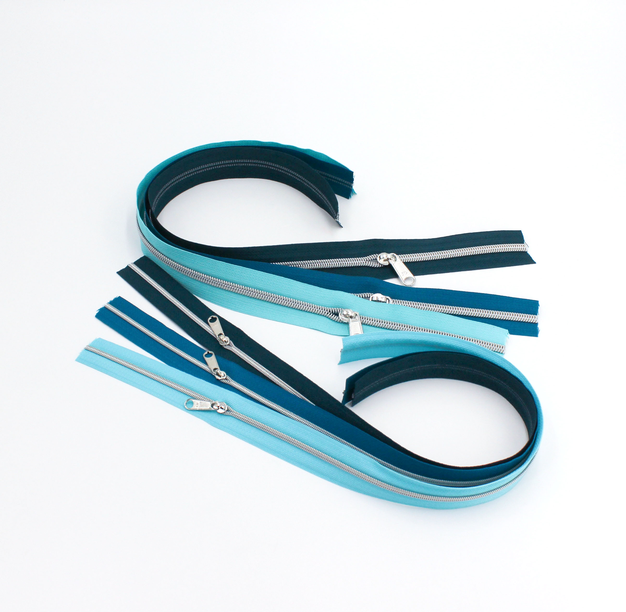 Mit diesem Reißverschluss-Set erhalten Sie jeweils 3x 0,5 m von der breiten Schiene und 3x 0,5 m von der schmalen Schiene, mit je 1 passendem Zipper pro 0,5 m Reißverschluss.