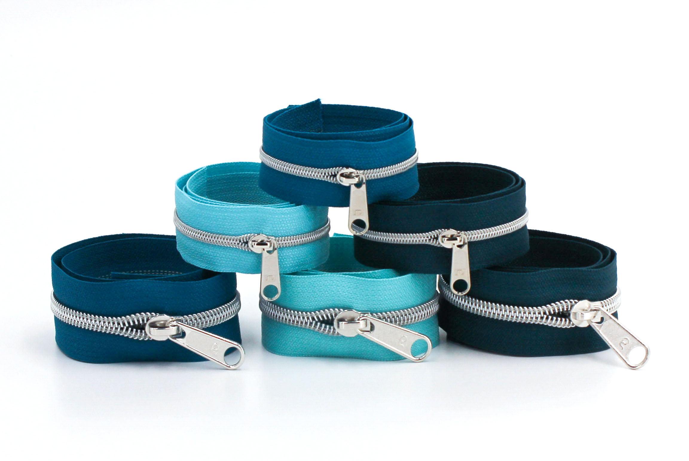 Produkt: Endlosreißverschluss- Set metallisiert dunkelpetrol, petrol, helltürkis/ silber
