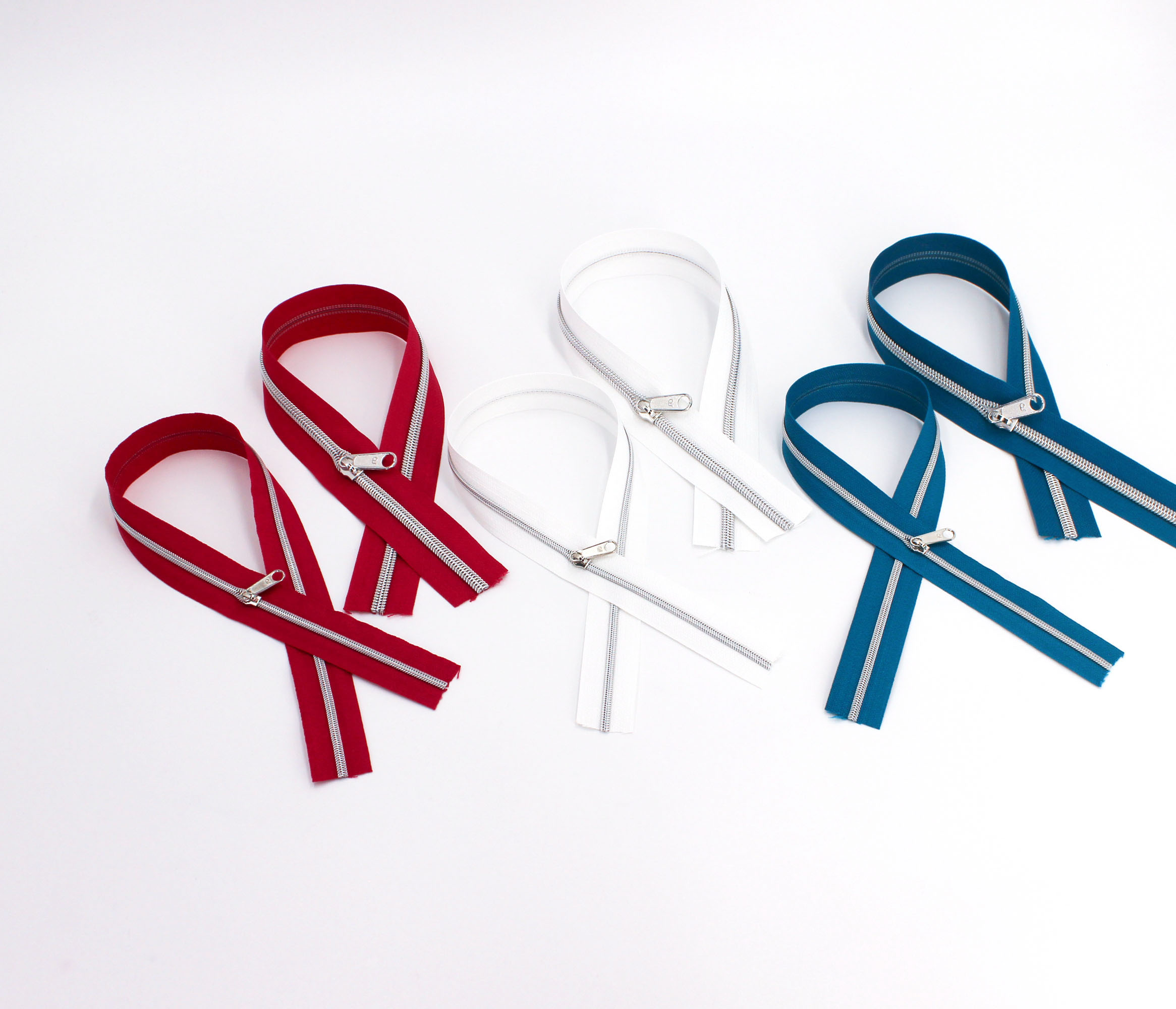 Produkt: Endlosreißverschluss- Set metallisiert fuchsia, petrol, weiß/ silber