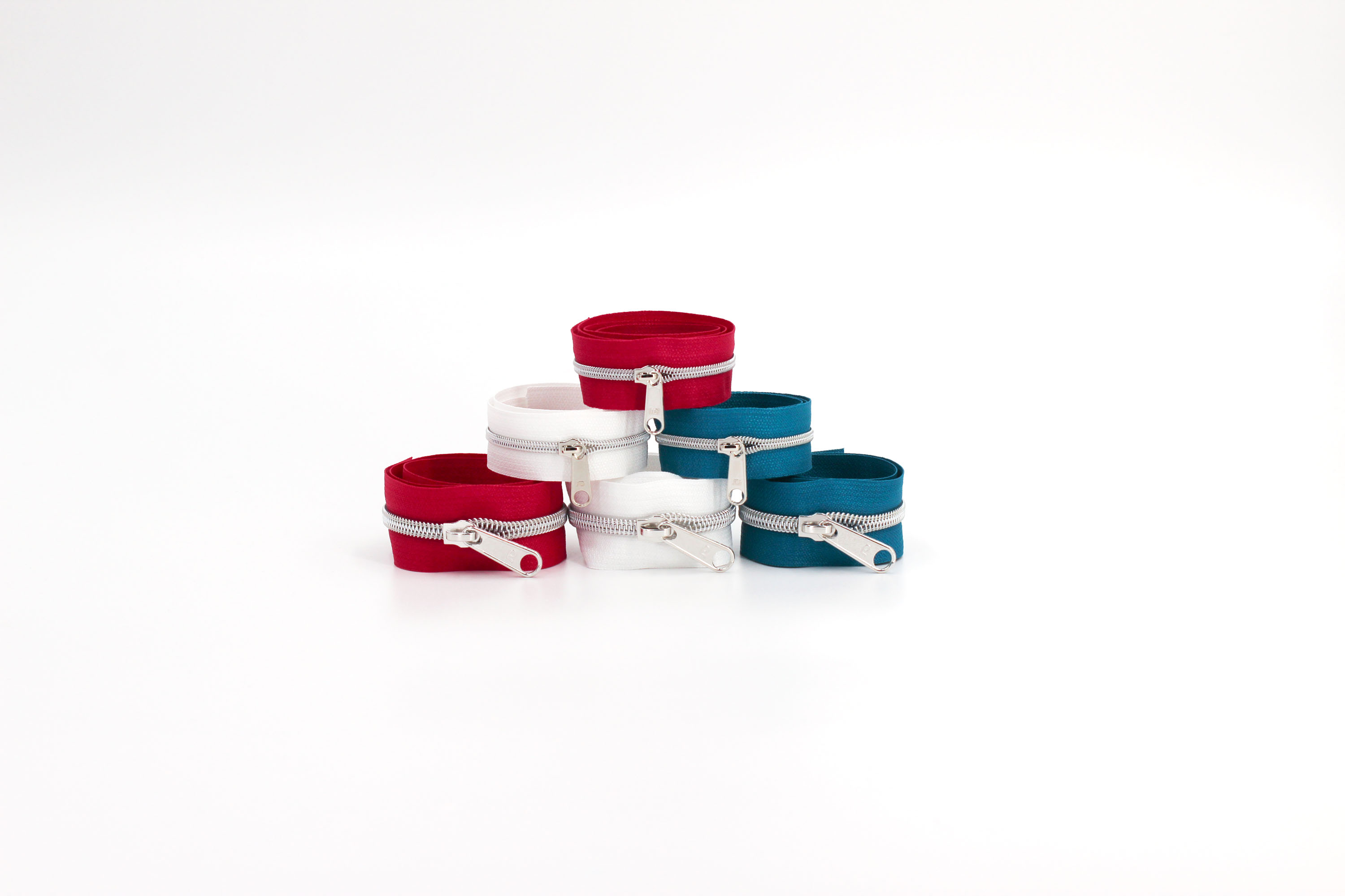 Mit diesem Reißverschluss-Set erhalten Sie jeweils 3x 0,5 m von der breiten Schiene und 3x 0,5 m von der schmalen Schiene, mit je 1 passendem Zipper pro 0,5 m Reißverschluss.