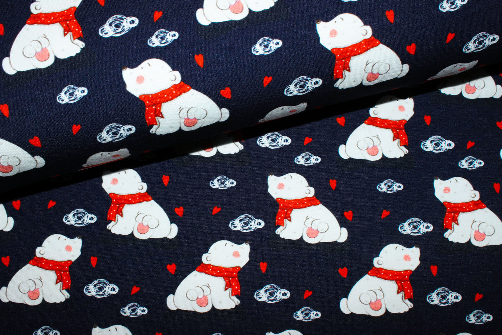 Hier biete ich Euch einen absolut traumhaften hochwertigen French Terry von "Fräulein von Julie" an. Der Untergrund ist dunkelblau. Prima geeignet zum Nähen von Shirts, Kleidchen, Schlauchschals, Beanies, Pumphosen und co.