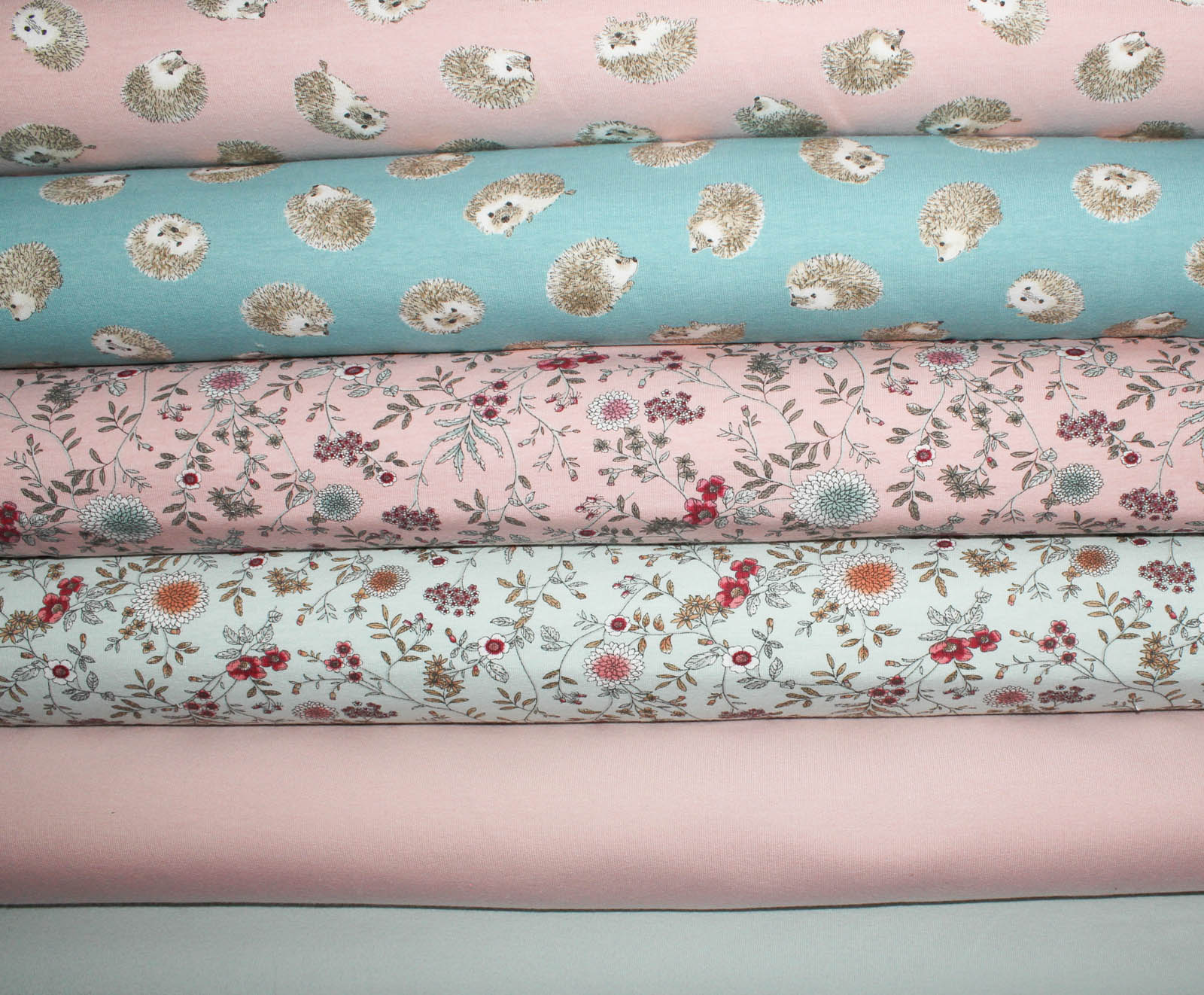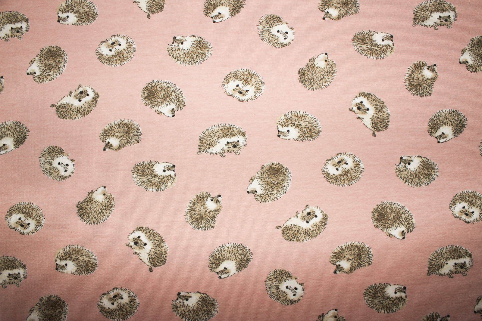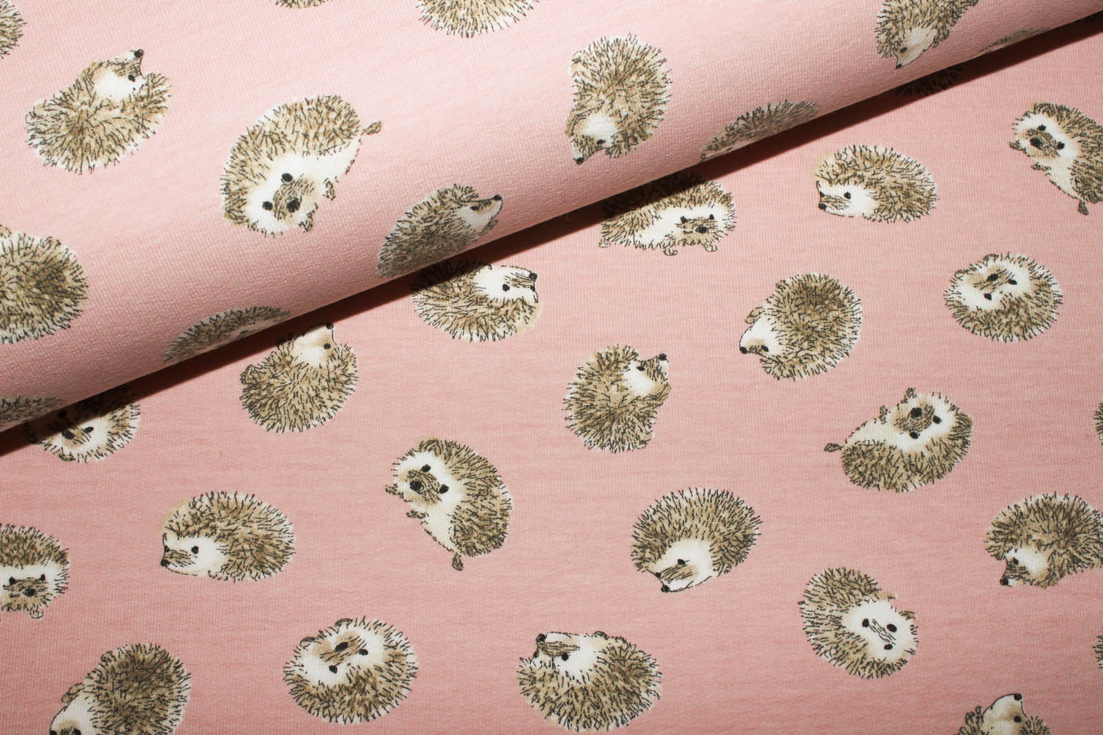 Hier biete ich Euch einen leichten traumhaften Sommersweat (French Terry) in lachsrosa mit Igel, aus dem Hause Hilco an.