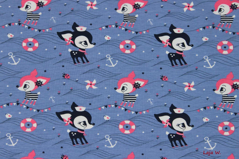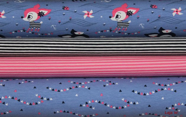 Hier biete ich Euch einen absolut traumhaften Jersey mit dem Hafenkitz in hortensie nach dem Design von Nikiko an.