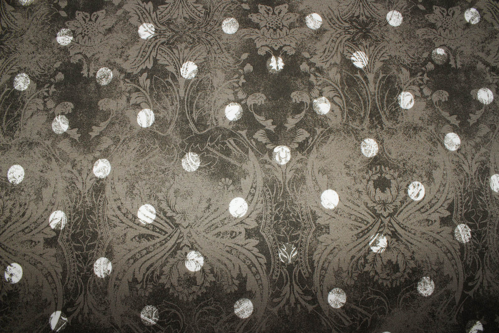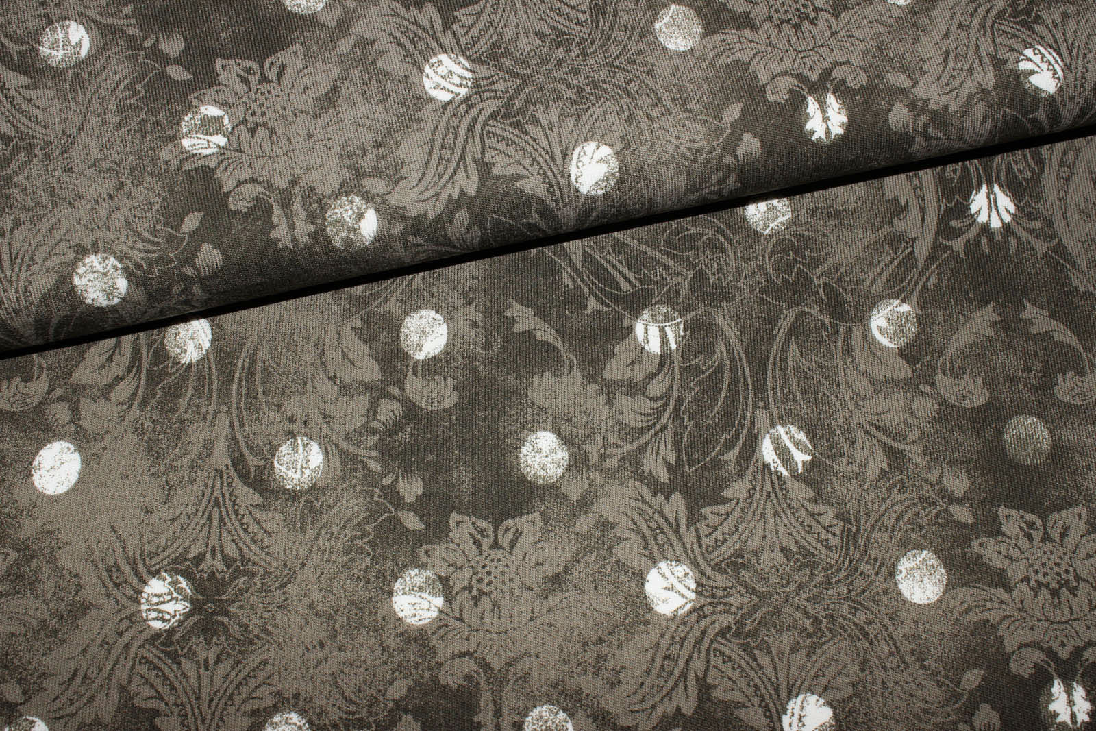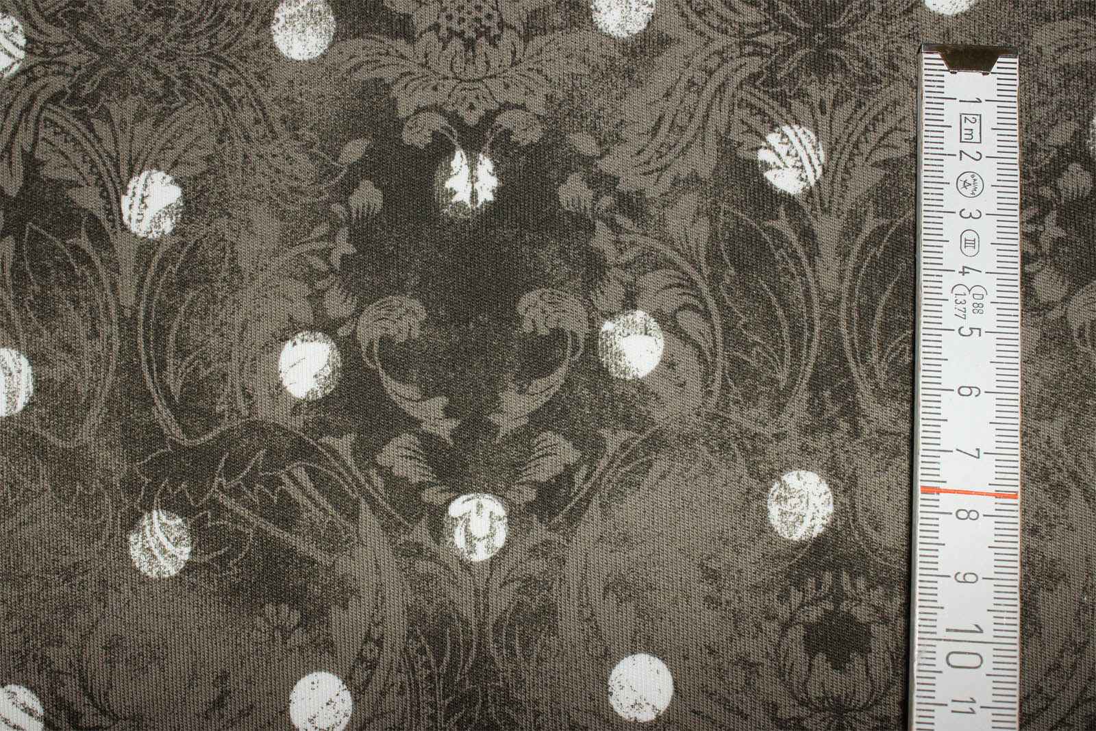 usw.Schöner griffiger Interlock Nostalgie aus dem Hause Lillestoff mit Blüten und Punkten im Vintagestyle auf einem dunkelbraunen Untergrund. Perfekt geeignet für Hoodies, Kleider, Röcke u.ä.