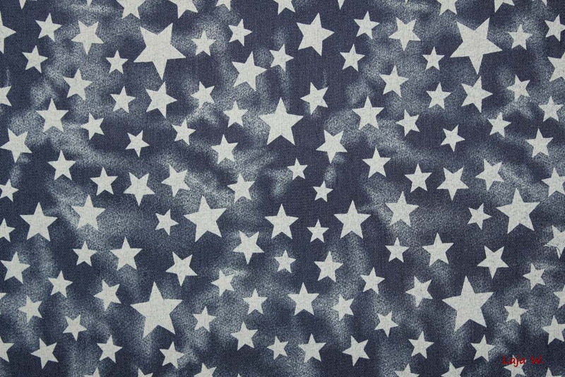 Jeans Sterne dunkelblau mittelschwere Qualität. Der Jeans eignet sich perfekt für schöne sommerliche Jeansröcke mit etwas Stand oder leichtere Sommerhosen u.ä.